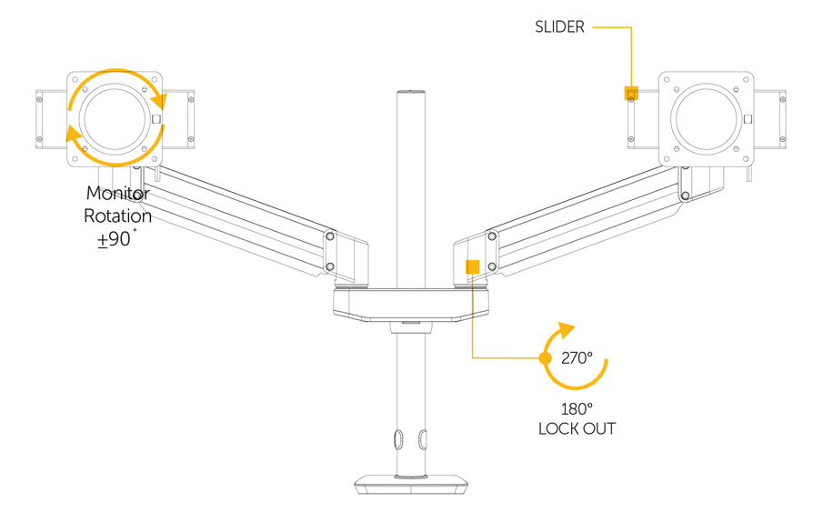 슬라이더 기능이 있어 여러 개의 모니터 사용시 틈없이 붙여서 사용할 수 있습니다.