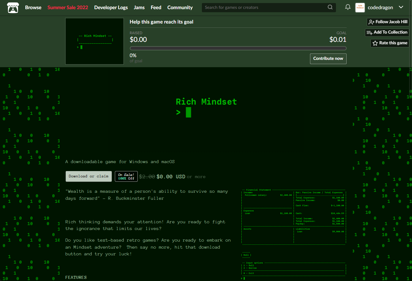 ₩2,592 -> ₩0(Free) Rich Mindset 리치 마인드셋 무료로 받기 영구소장 - itch.io 잇치 닷 아이오 한시적 무료 소장하기