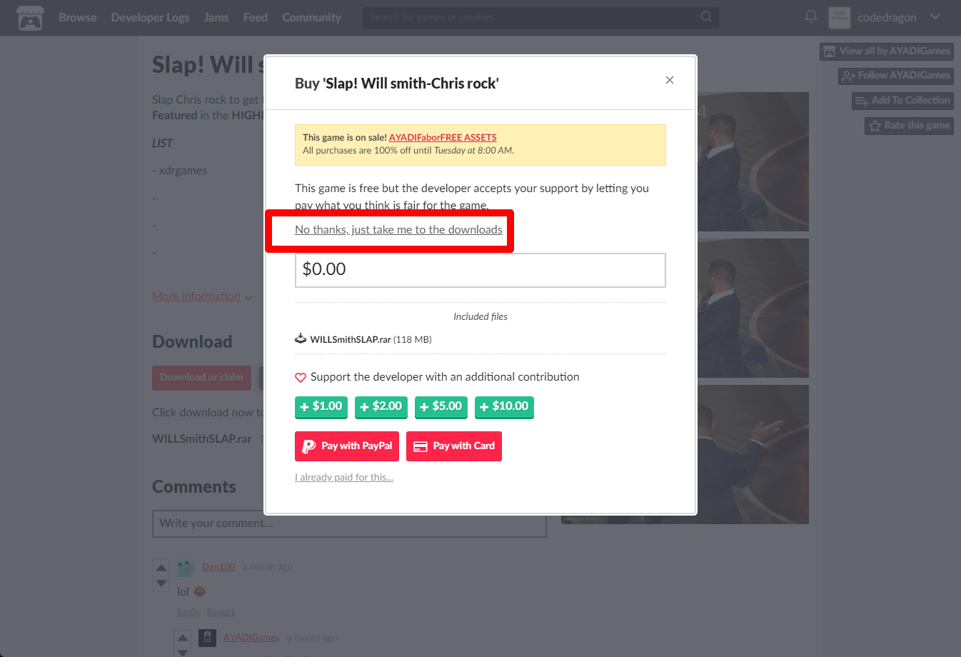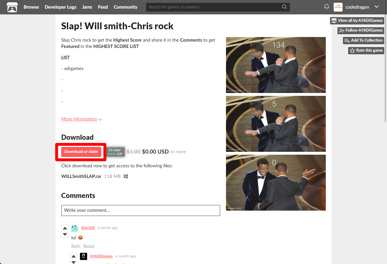 "Slap! Will smith-Chris rock" 페이지에 있는 [Download or claim]을 클릭합니다.