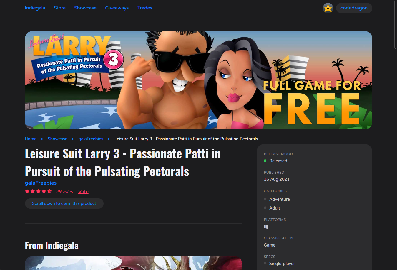 ₩4,400 -> ₩ 0(Free) Leisure Suit Larry 3 - Passionate Patti in Pursuit of the Pulsating Pectorals 무료 - 인디갈라 indiegala 무료 소장 기회 기간한정 indiegalaFREE GAME, Limited time