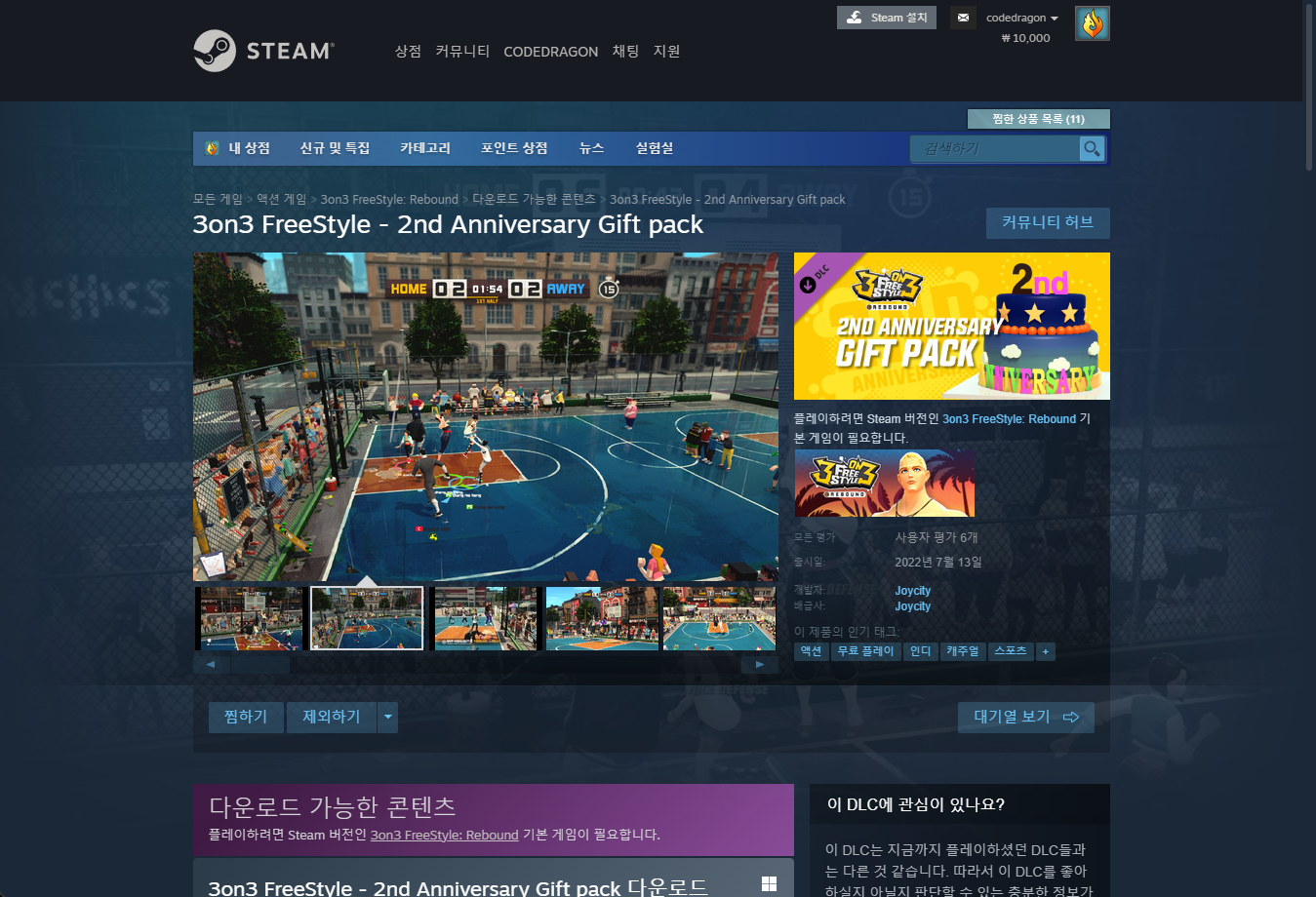 "3on3 FreeStyle - 2nd Anniversary Gift pack" DLC 게임페이지에 접속합니다.