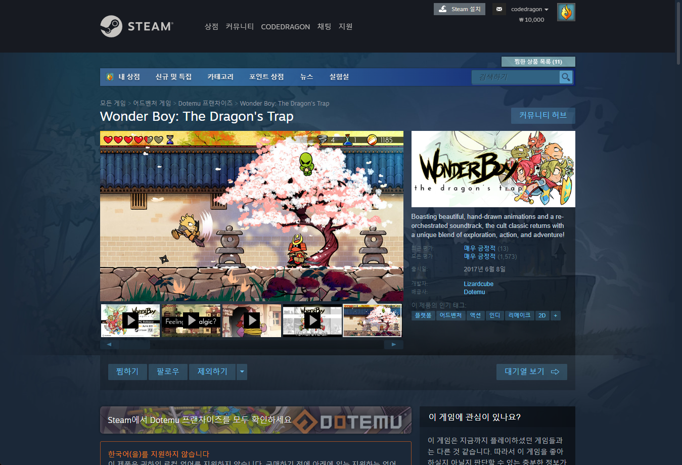 "Wonder Boy: The Dragon's Trap" - Steam 스팀 게임 페이지
