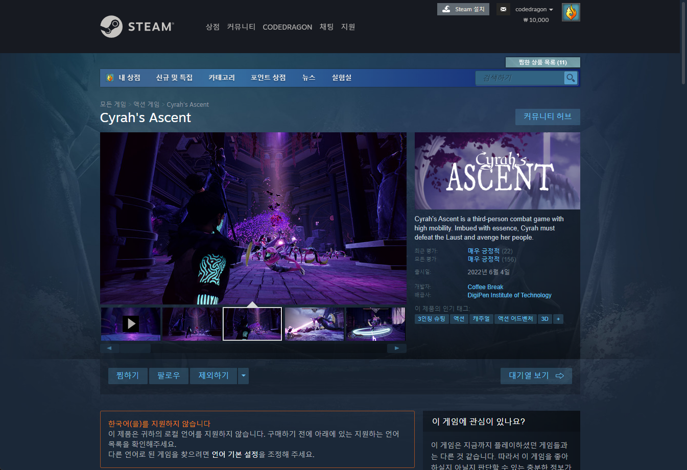 "Cyrah's Ascent" 스팀 페이지 입니다.