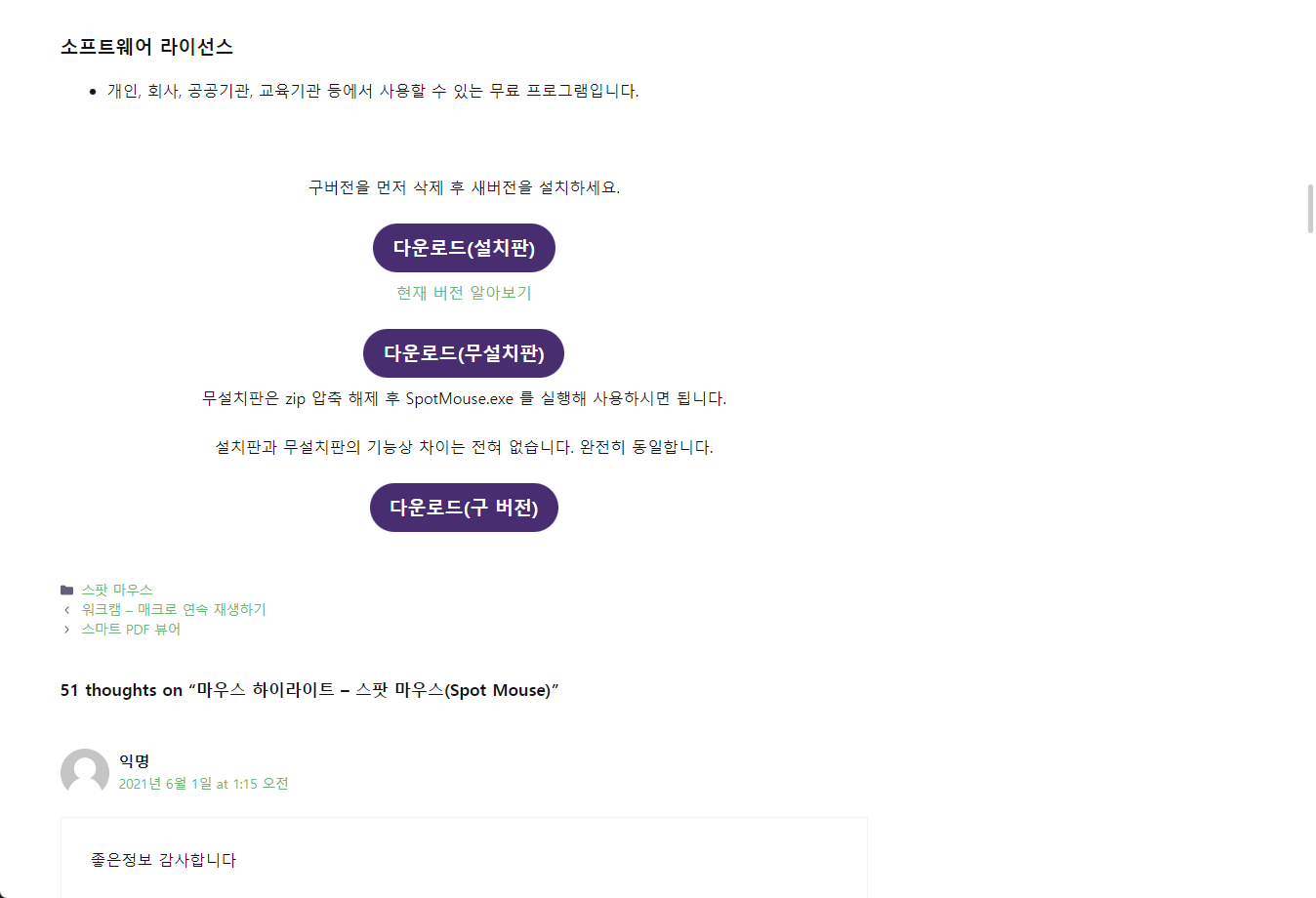이전 버전들이 있으면 클릭해서 다운받아 사용할 수 있습니다.