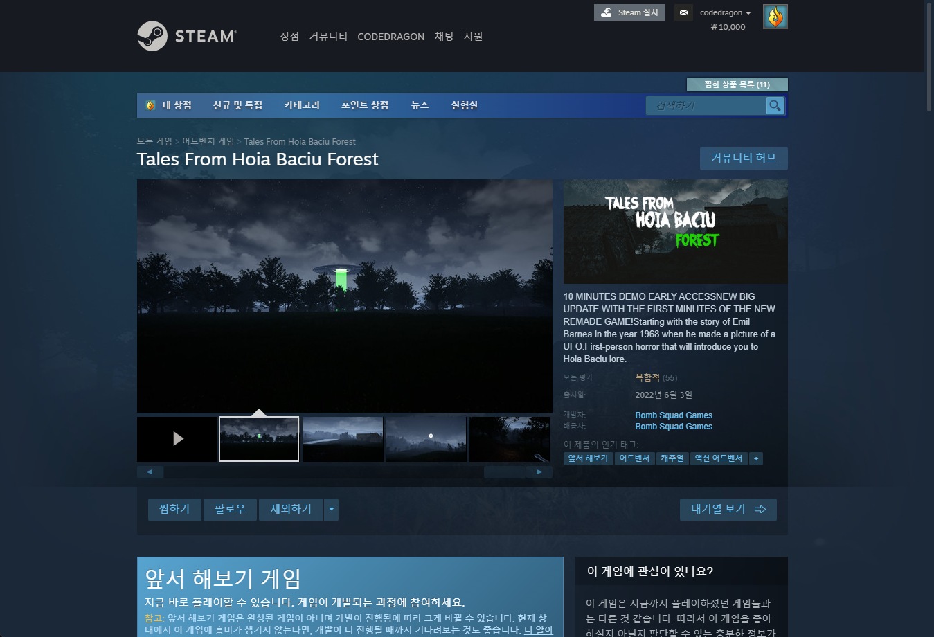 "Tales From Hoia Baciu Forest" 스팀 페이지 입니다.