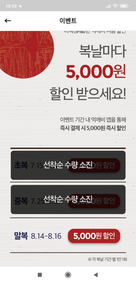 2022년 복날기간에 해당 지역에서만 적용되는 이벤트입니다.