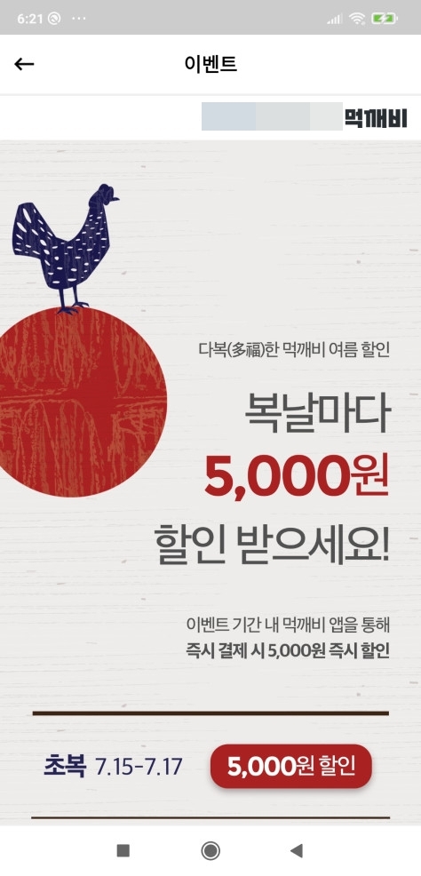 복날 5,000원 할인 - 다복한 먹깨비 여름 할인