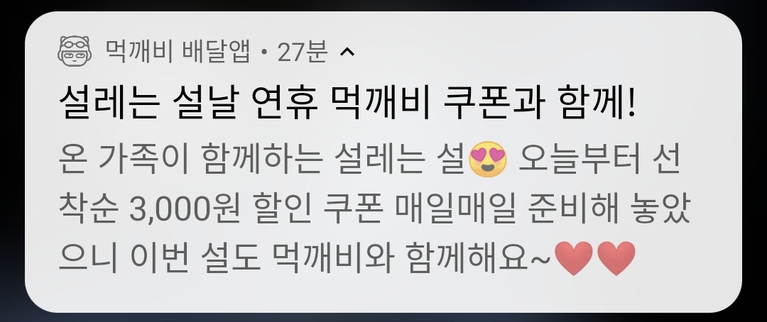 - 설날 연휴 먹깨비 3,000원 쿠폰