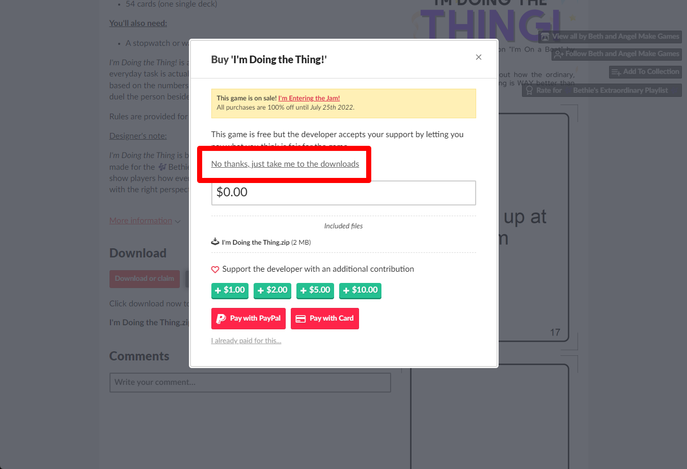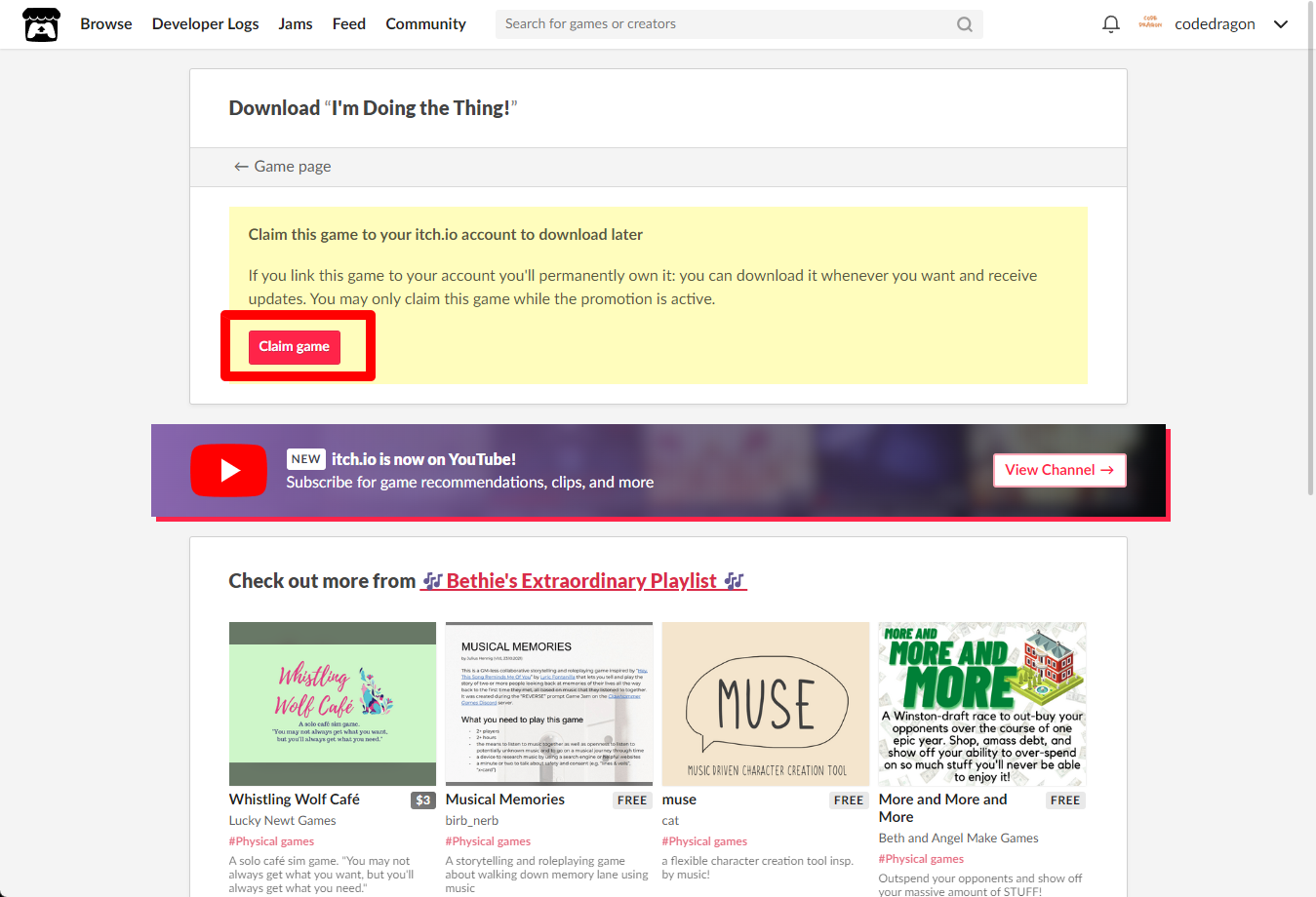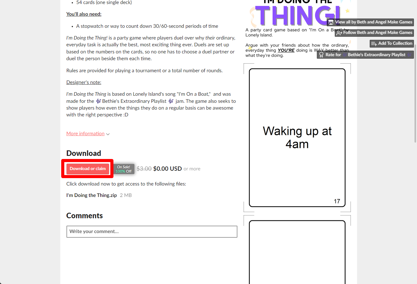 "I'm Doing the Thing!" 페이지에 있는 [Download or claim]을 클릭합니다.