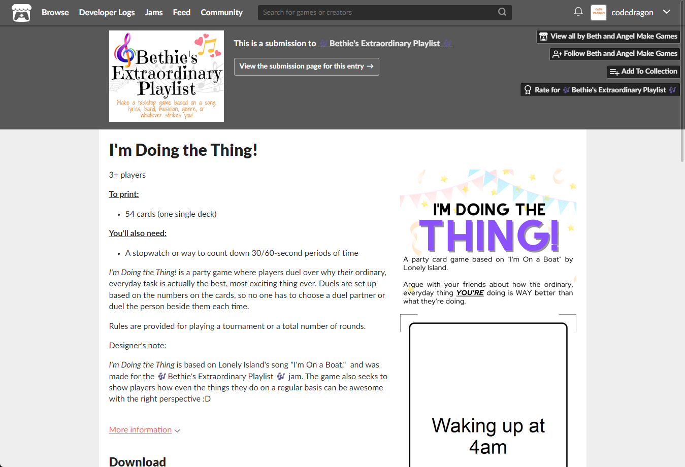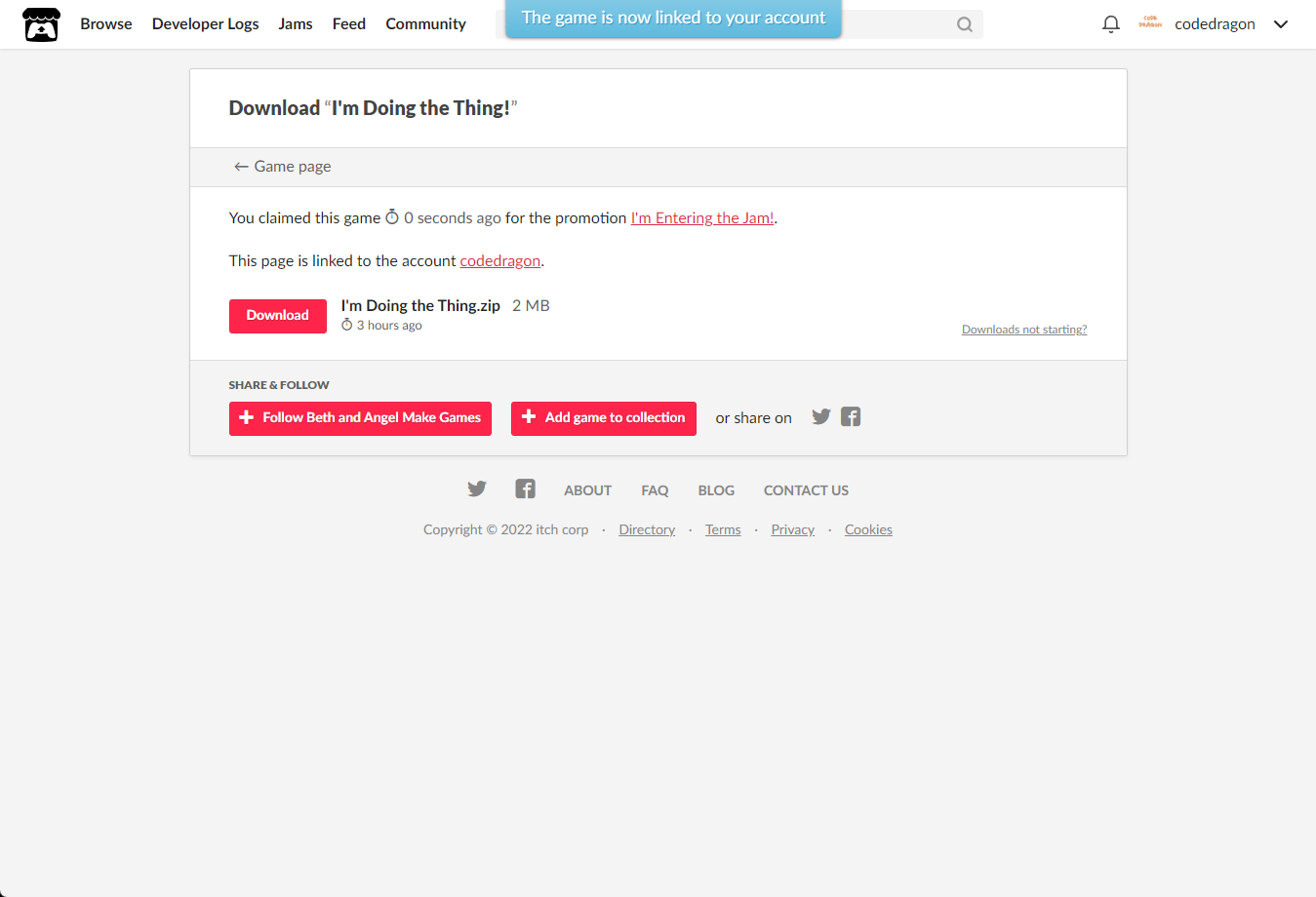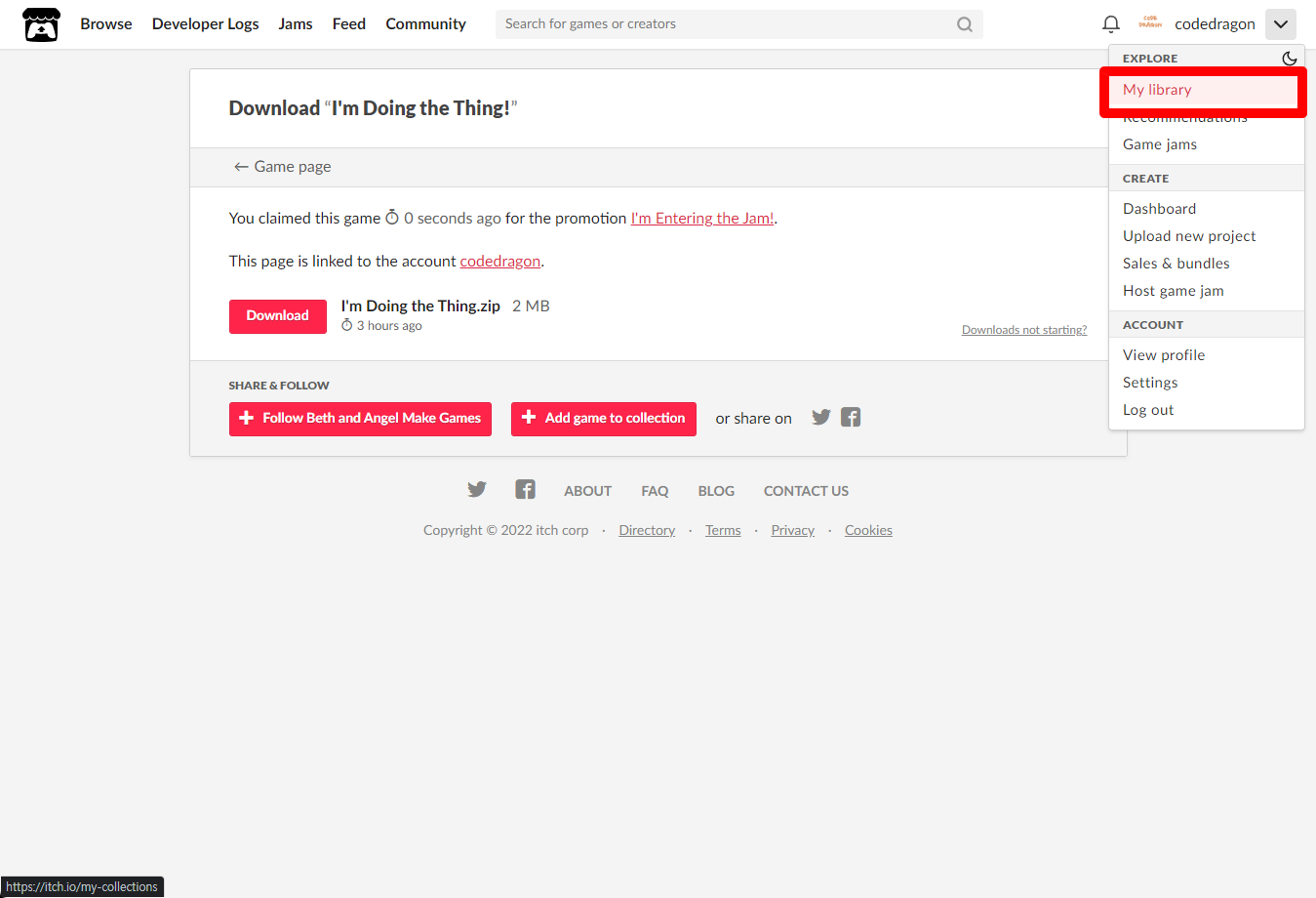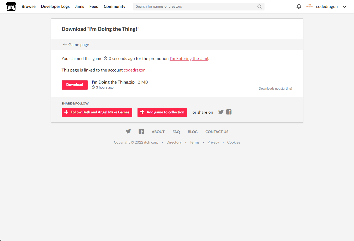"I'm Doing the Thing!" 페이지에 있는 [Download or claim]을 클릭합니다.
