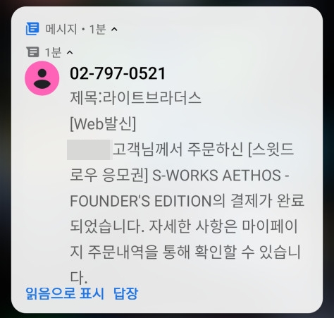 주문 결제 완료 알림 메시지