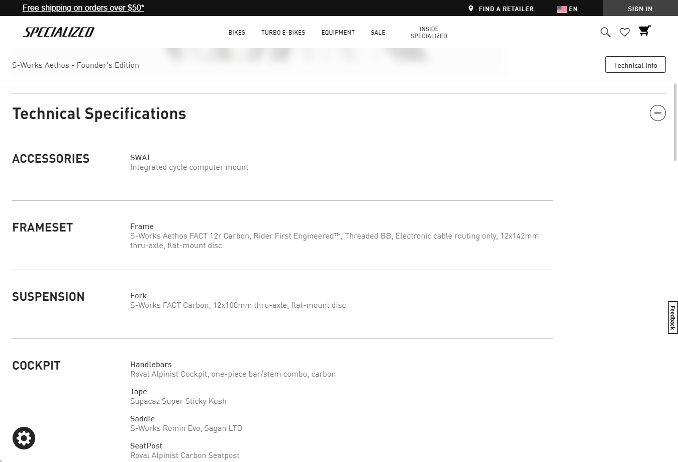 2021 S-Works Aethos - Founder's Edition 자전거정보