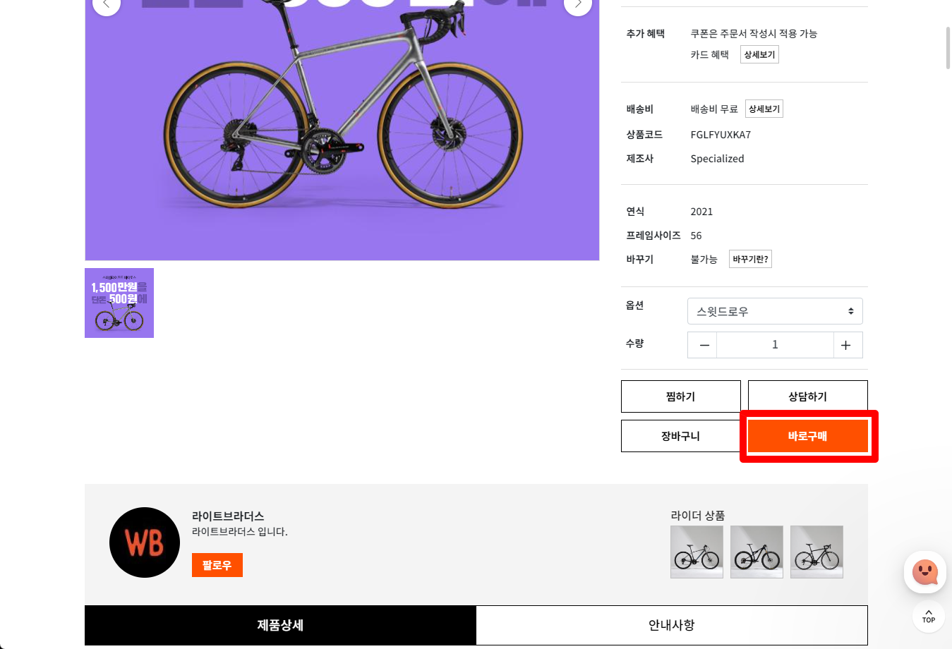 페이지를 조금내려서 [바로구매] 클릭하겠습니다.