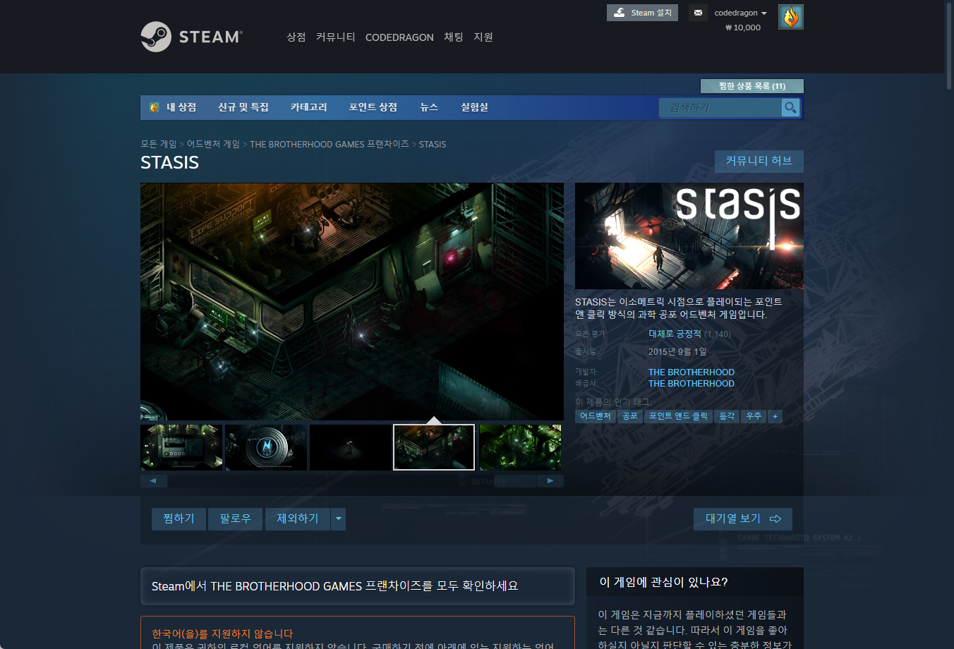 ₩10,500 → ₩ 8,900 → ₩0(FREE) STASIS (스테이시스) - gog 지오지닷컴 한시적 무료게임 for FREE