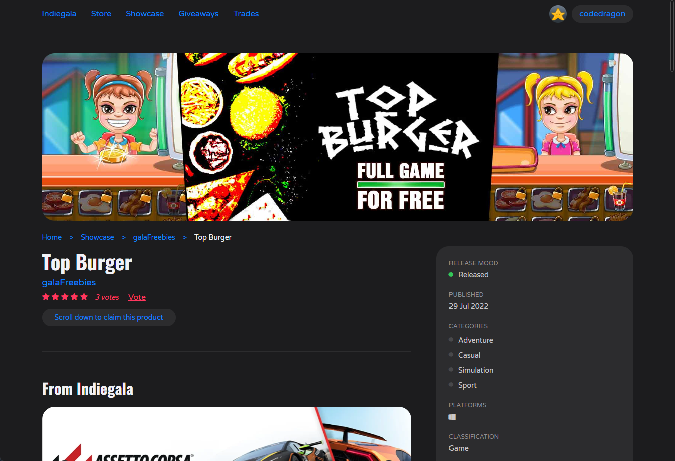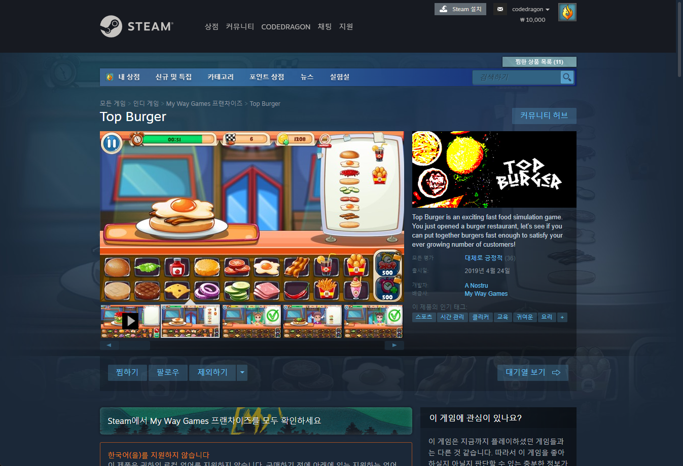 ₩10,500 -> ₩ 0(Free) Top Burger 탑 버거 무료 - 인디갈라 indiegala 무료 소장 기회 기간한정 indiegala FREE GAME, Limited time