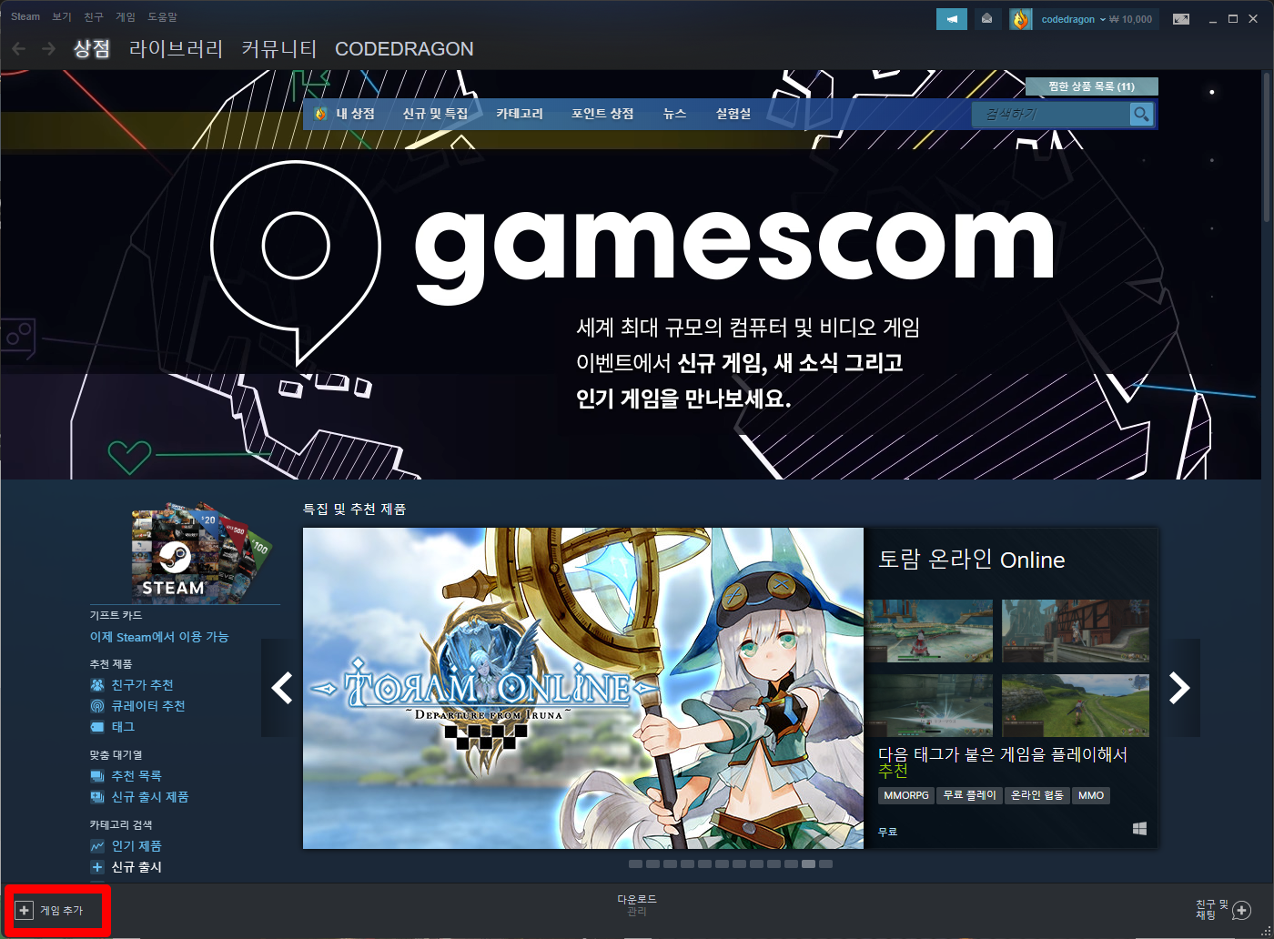 좌측하단의 [+ 게임추가] 클릭합니다.