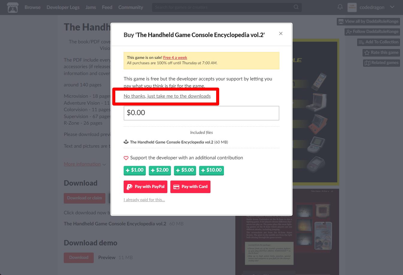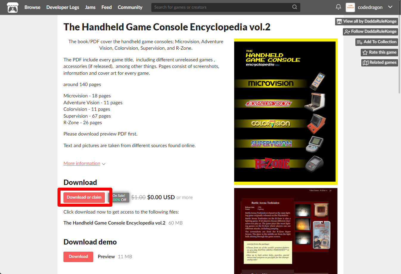 "The Handheld Game Console Encyclopedia vol.2" 페이지에 있는 [Download or claim]을 클릭합니다.