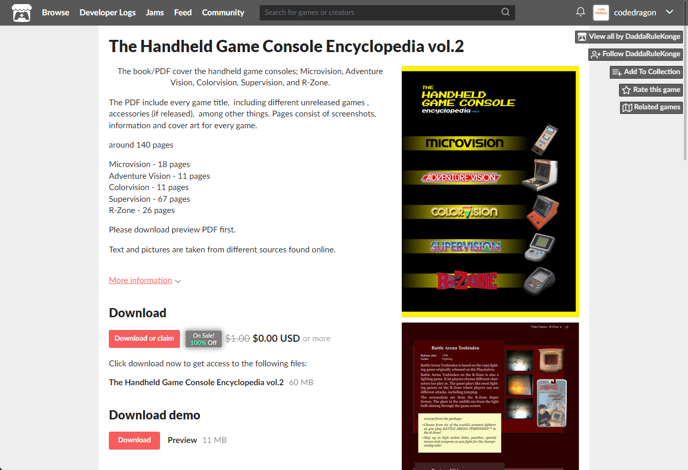 ₩1,302 -> ₩0(Free) The Handheld Game Console Encyclopedia vol.2 더 핸드헬드 게임 콘솔 인사이클러피디어 vol.2 무료로 받기 영구소장 - itch.io 잇치 닷 이오 한시적 무료 소장하기