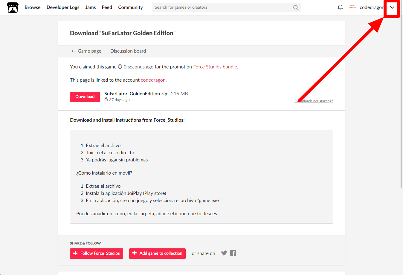"SuFarLator Golden Edition" 페이지에 있는 [Download or claim]을 클릭합니다.