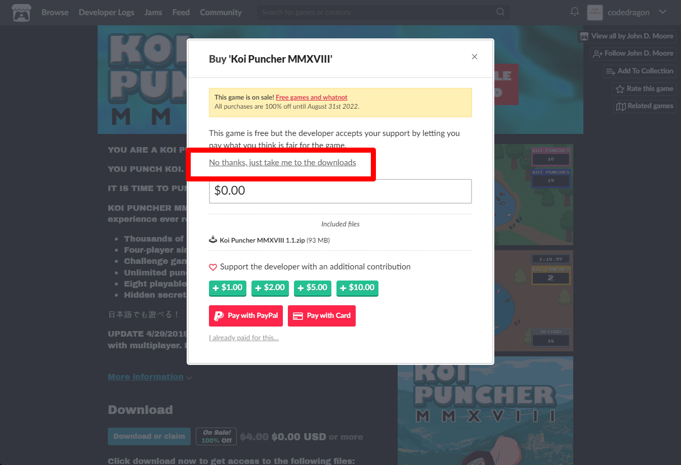 "Koi Puncher MMXVIII" 페이지에 있는 [Download or claim]을 클릭합니다.