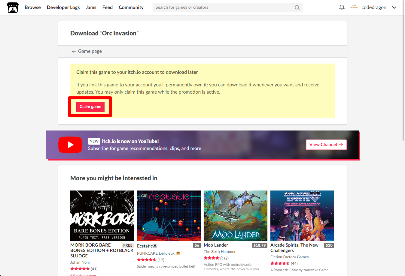 "Orc Invasion" 페이지에 있는 [Download or claim]을 클릭합니다.