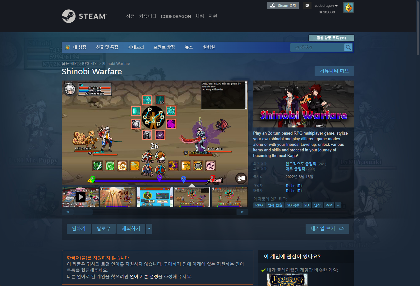 "Shinobi Warfare" 스팀 페이지 입니다.