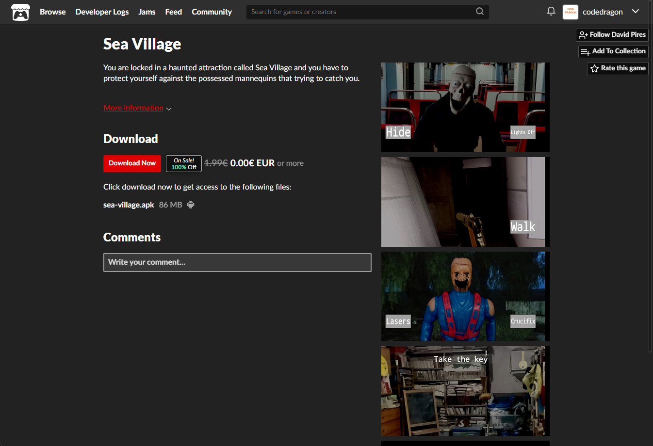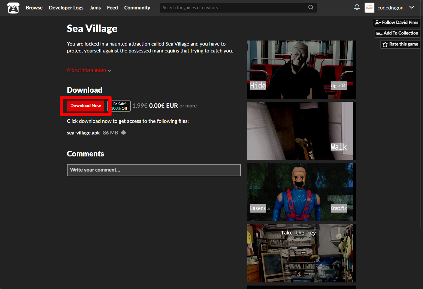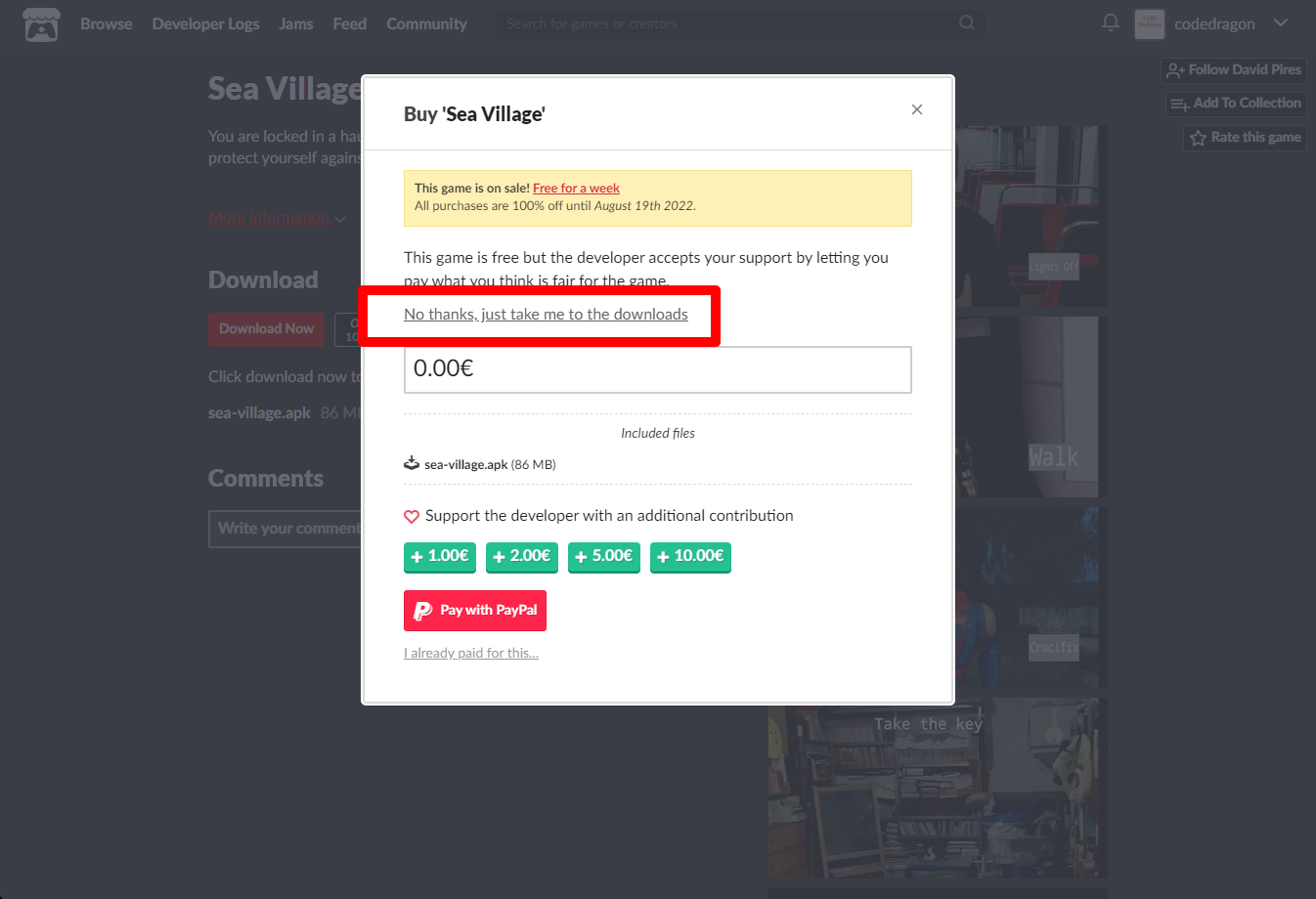 "Sea Village" 페이지에 있는 [Download or claim]을 클릭합니다.