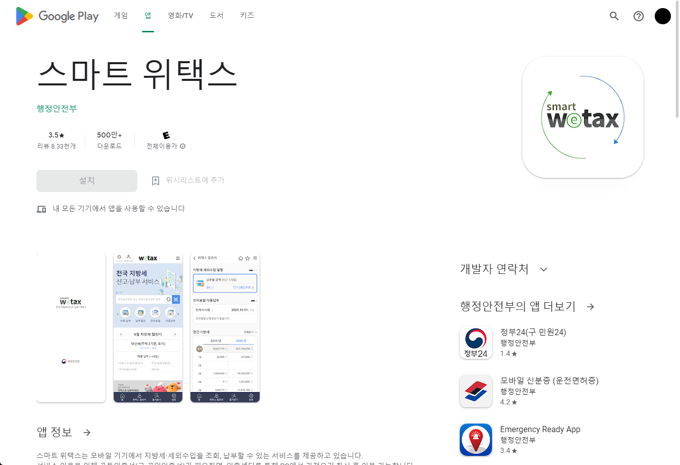 스마트 위택스 설치하기 install - smart wetax 행정안전부 (지방세/과태료 조회/납부)
