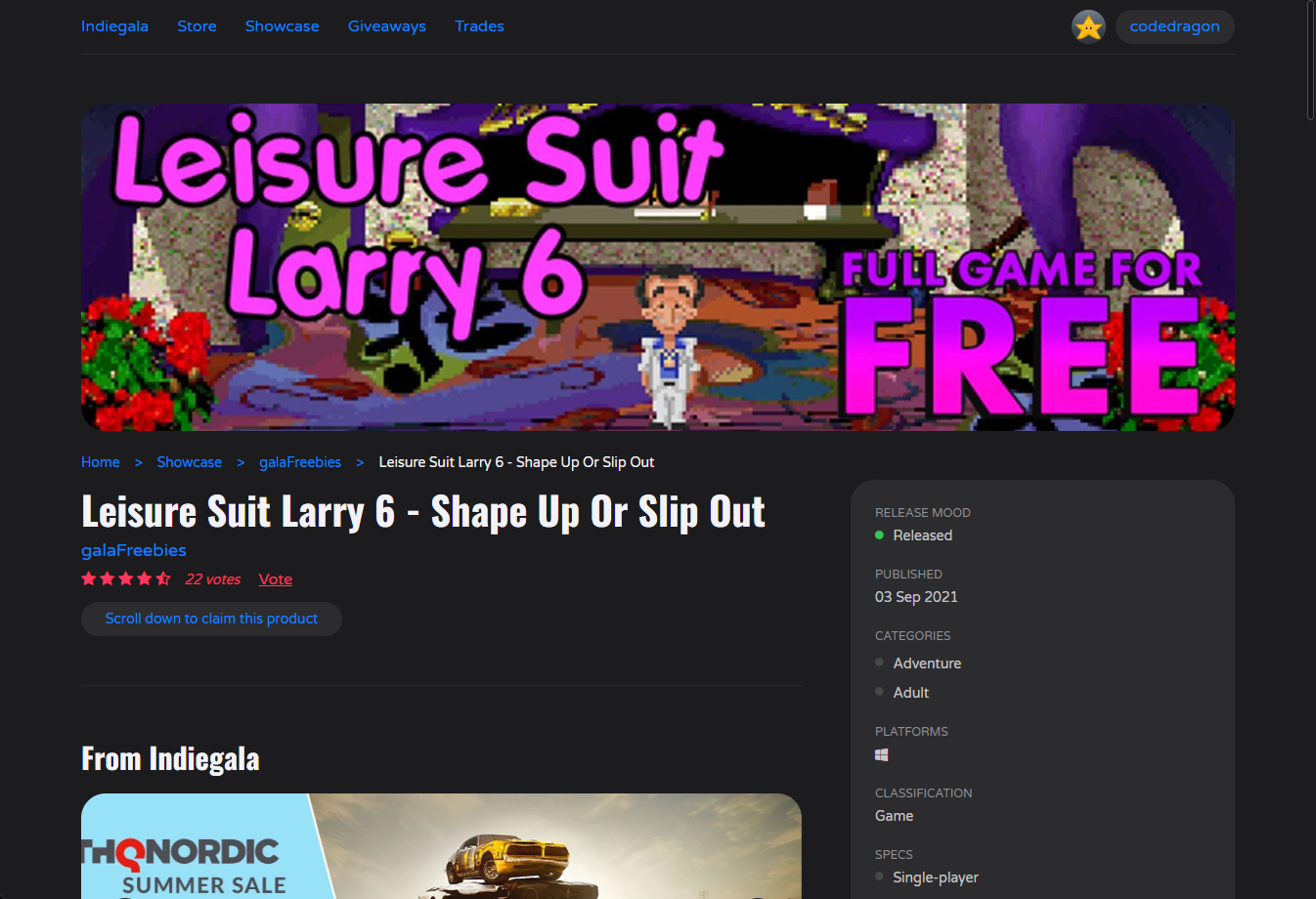 ₩5,500 -> ₩ 0(Free) Leisure Suit Larry 6 - Shape Up Or Slip Out 레저 슈트 래리 6 - 쉐입 업 오알 슬립 아웃 무료 - 인디갈라 indiegala 무료 소장 기회 기간정 indiegala FREE GAME, Limited time