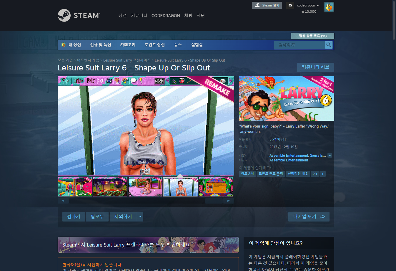 "Leisure Suit Larry 6 - Shape Up Or Slip Out" - Steam 스팀 페이지