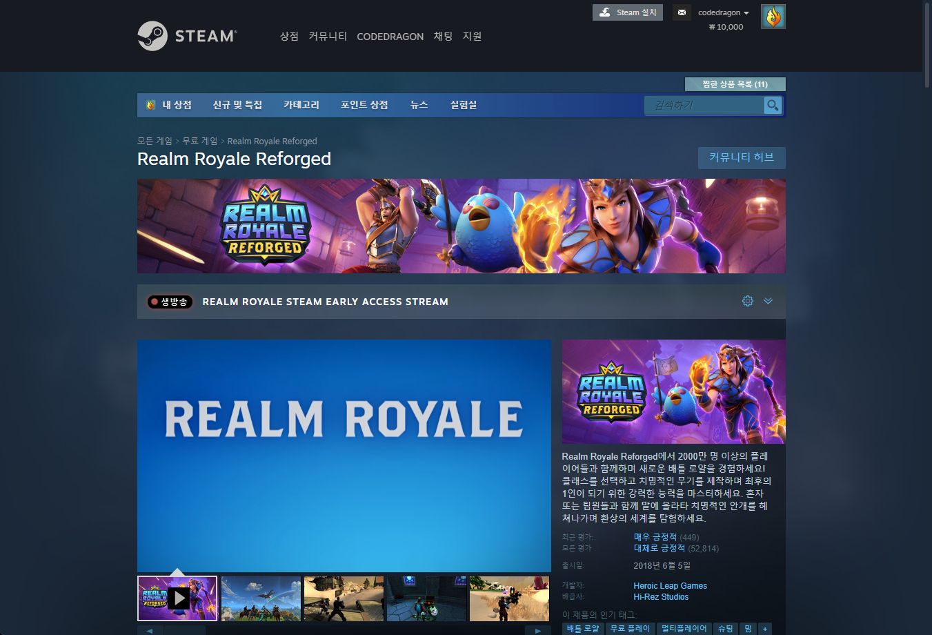 "Realm Royale Reforged" 스팀 페이지 입니다.