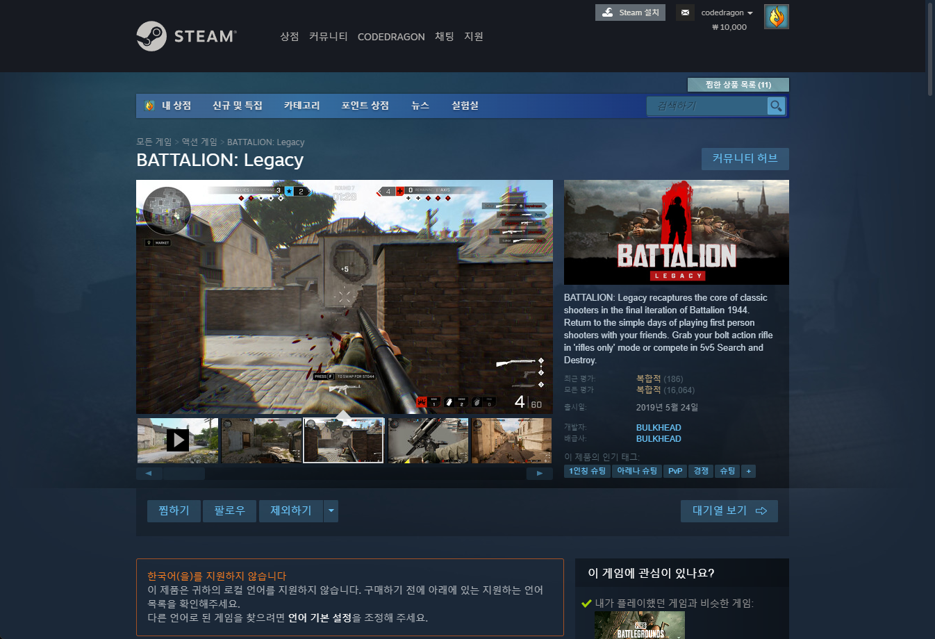 "BATTALION: Legacy" 스팀 페이지 입니다.