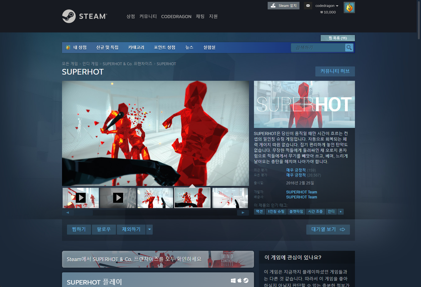 - "SUPERHOT" 게임 페이지