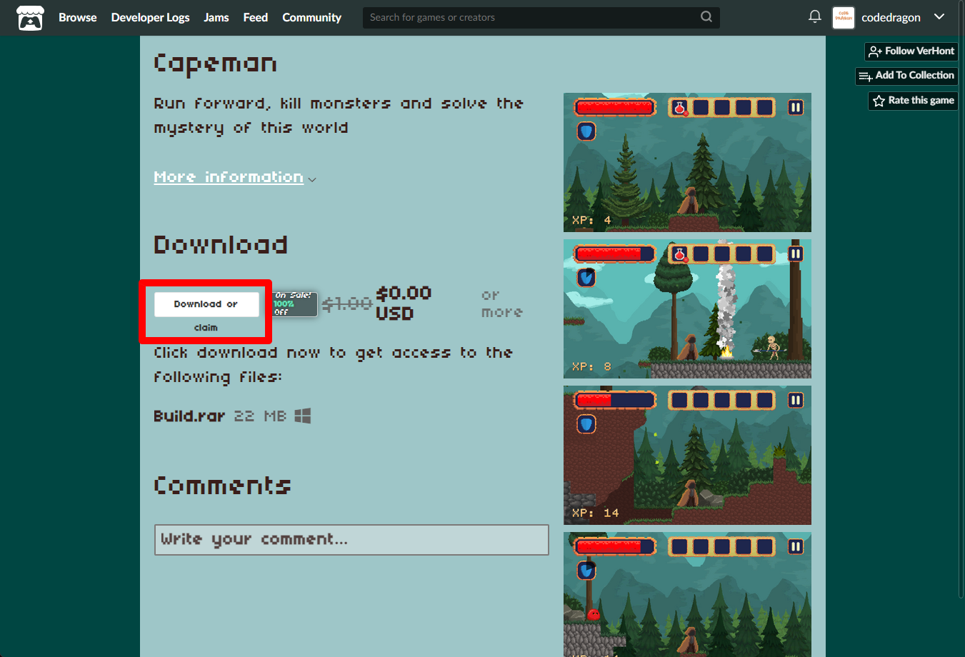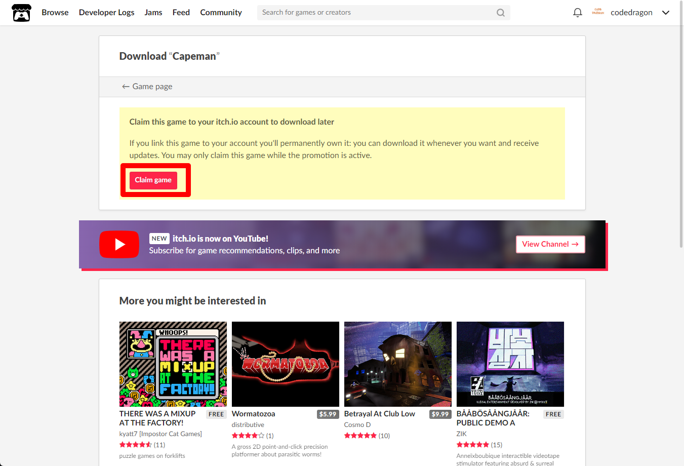 "Capeman" 페이지에 있는 [Download or claim]을 클릭합니다.