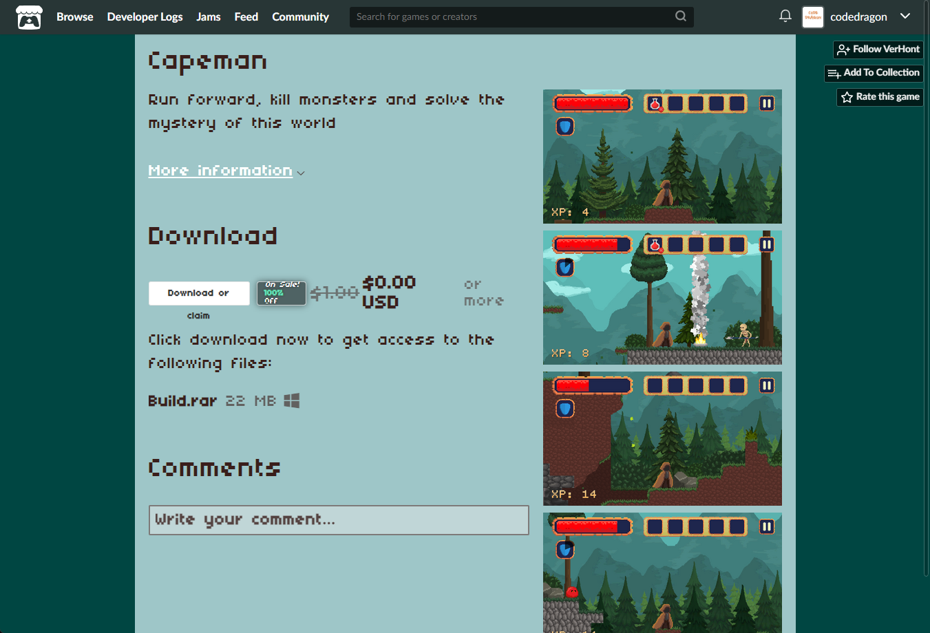 ₩1,423 -> ₩0(Free) Capeman 케이프맨 무료로 받기 영구소장 - itch.io 잇치 닷 아이오 한시적 무료 소장하기