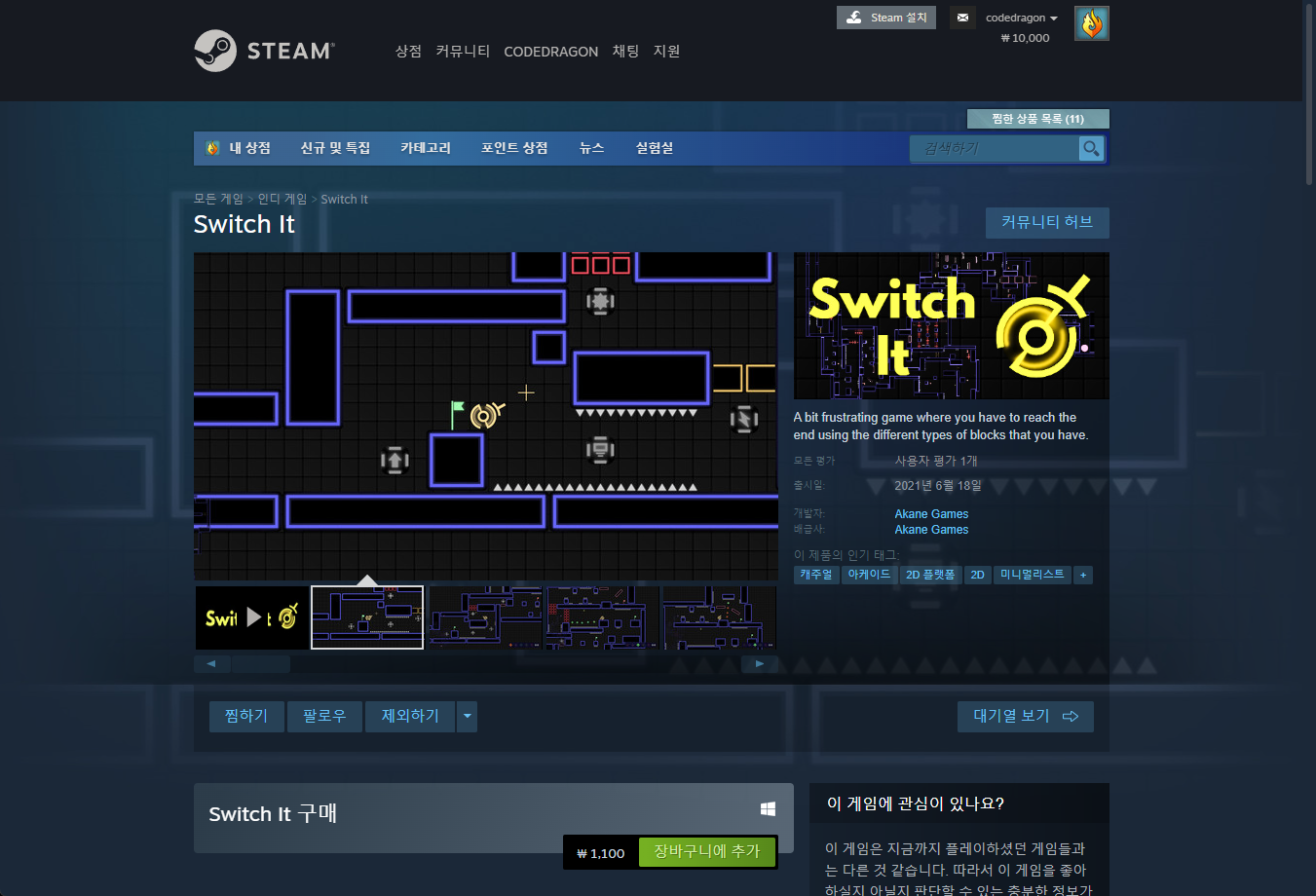 ₩1,100 -> ₩0(Free) Switch It 스위치 잇 무료로 받기 영구소장 - itch.io 잇치 닷 아이오 한시적 무료 소장하기