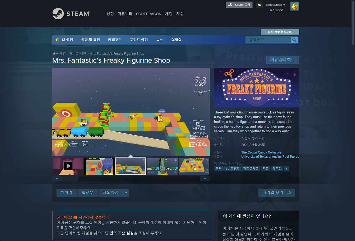 "Mrs. Fantastic's Freaky Figurine Shop" 스팀 페이지 입니다.