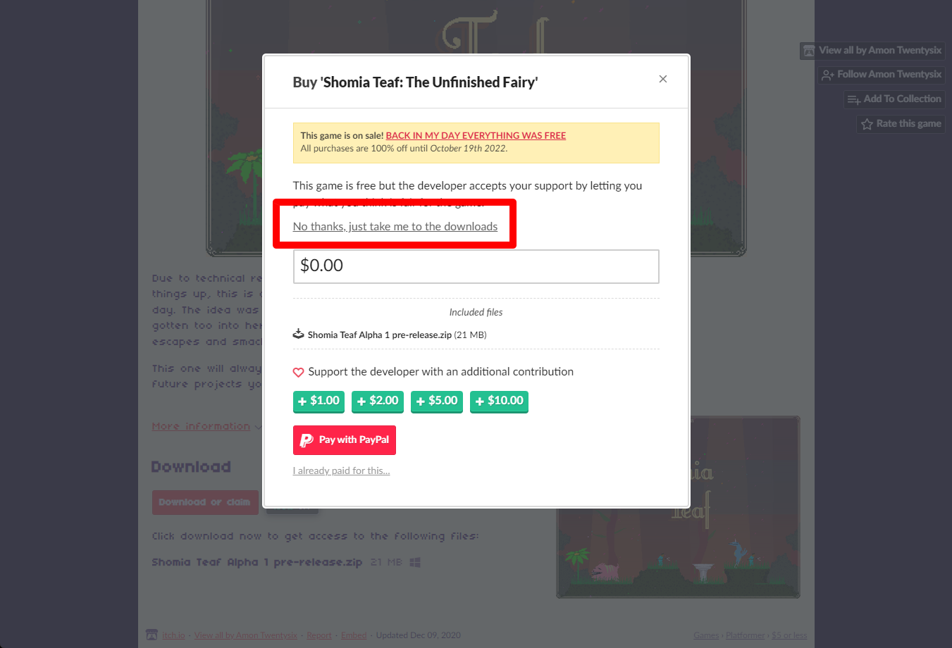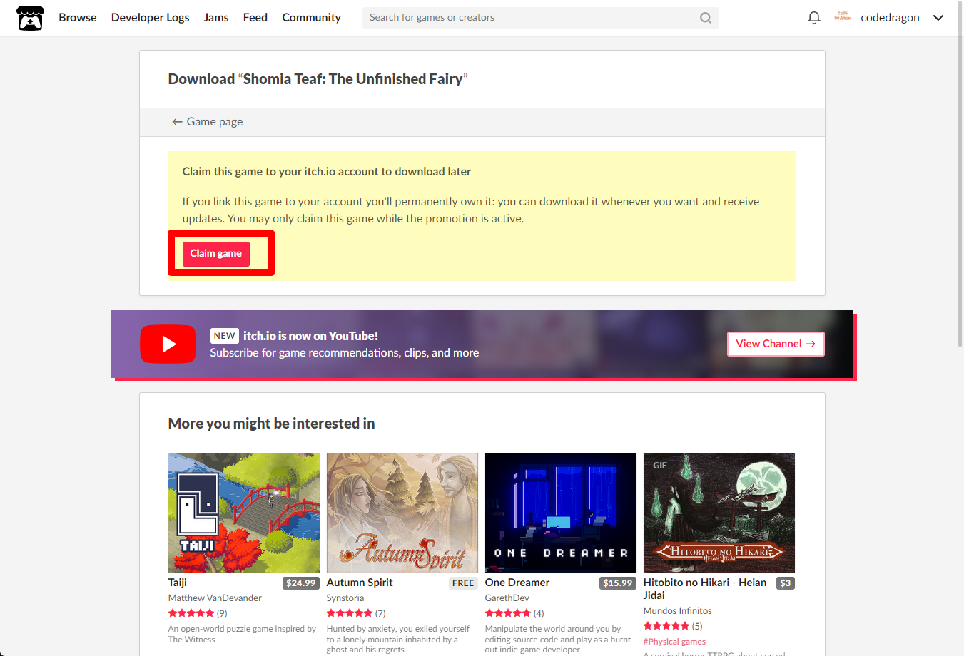 "Shomia Teaf: The Unfinished Fairy" 페이지에 있는 [Download or claim]을 클릭합니다.