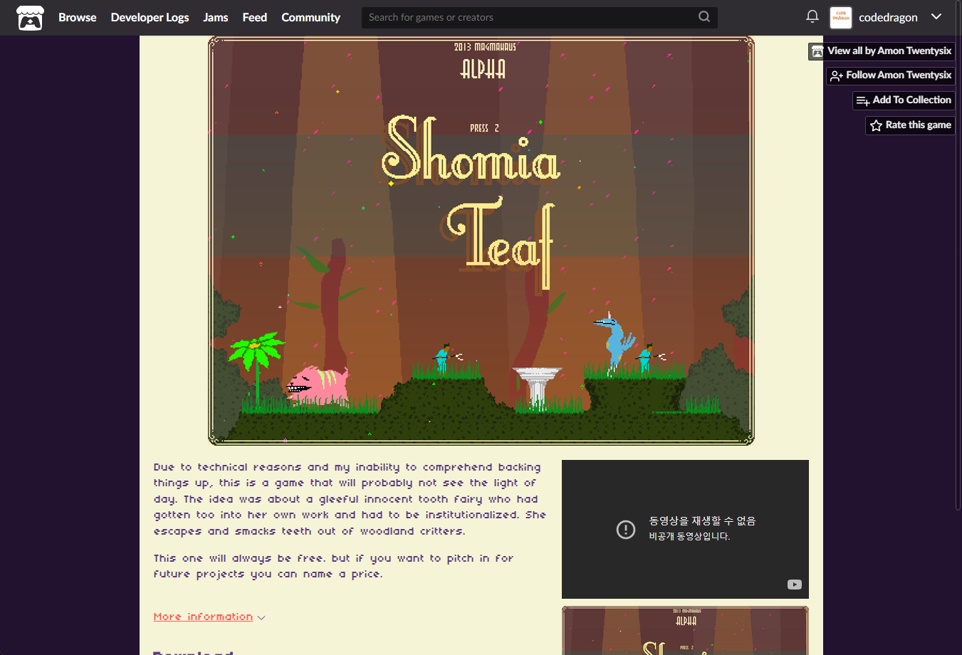 - "Shomia Teaf: The Unfinished Fairy" 게임 페이지
