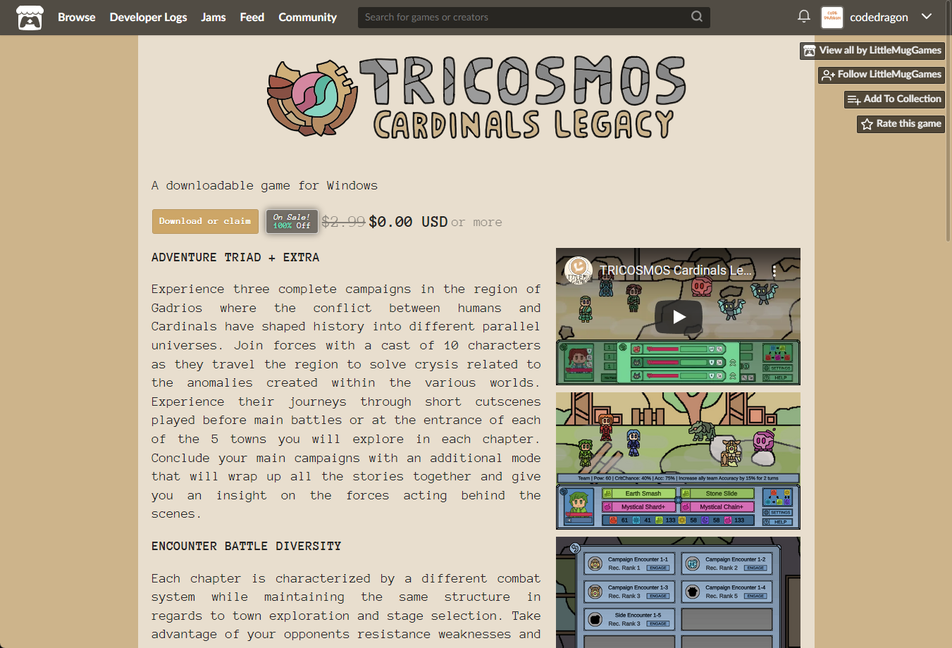 "TRICOSMOS: Cardinals Legacy" 게임 페이지