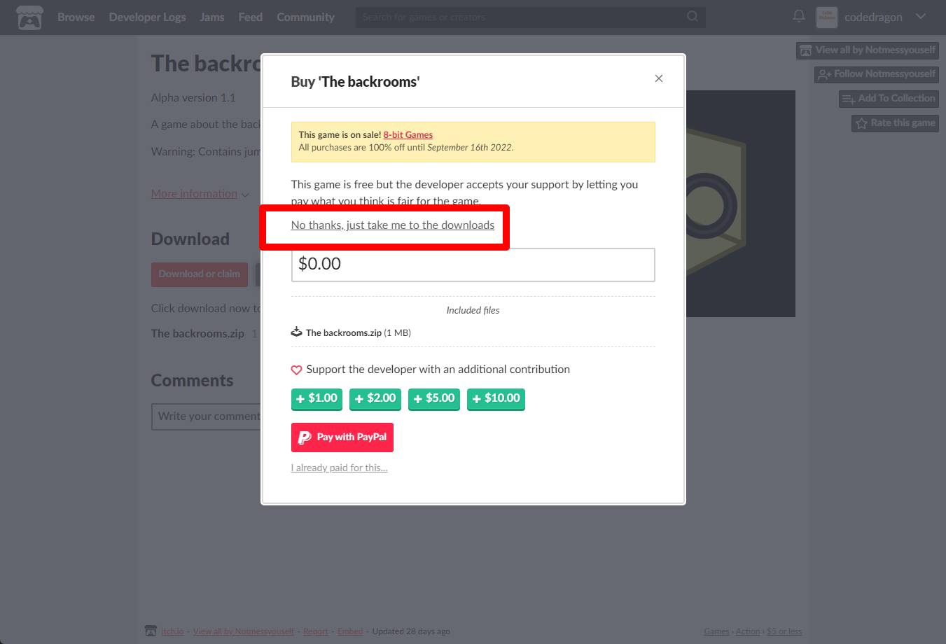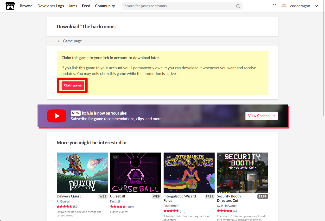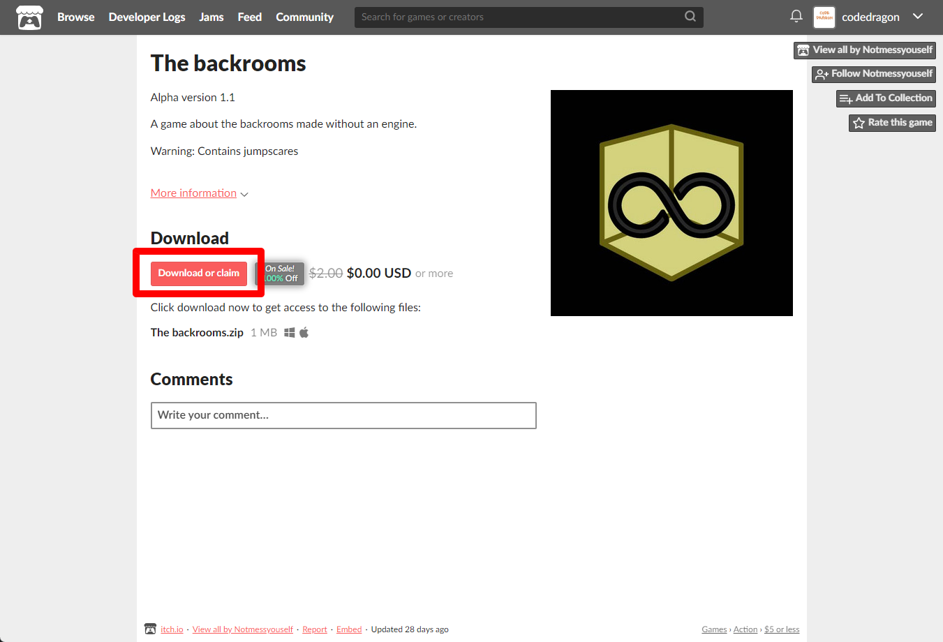 "The backrooms" 페이지에 있는 [Download or claim]을 클릭합니다.
