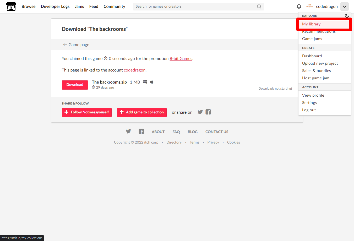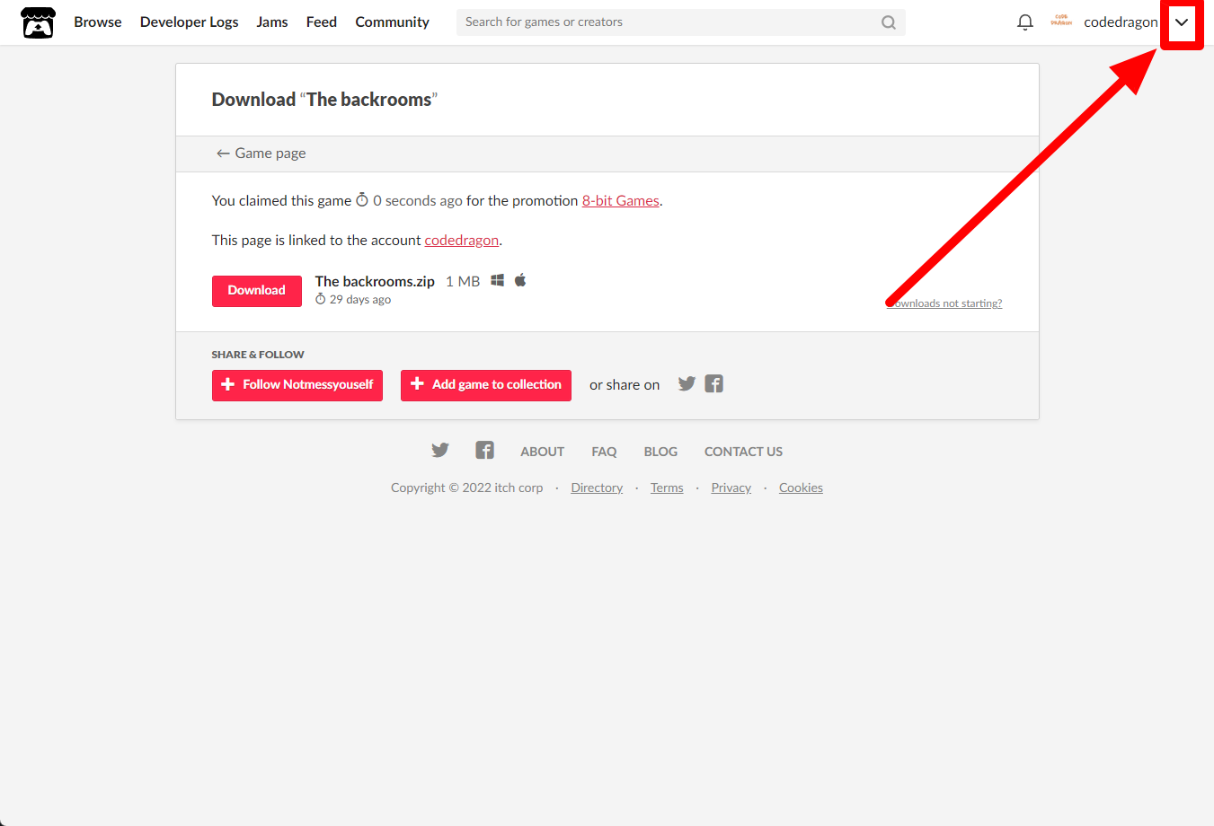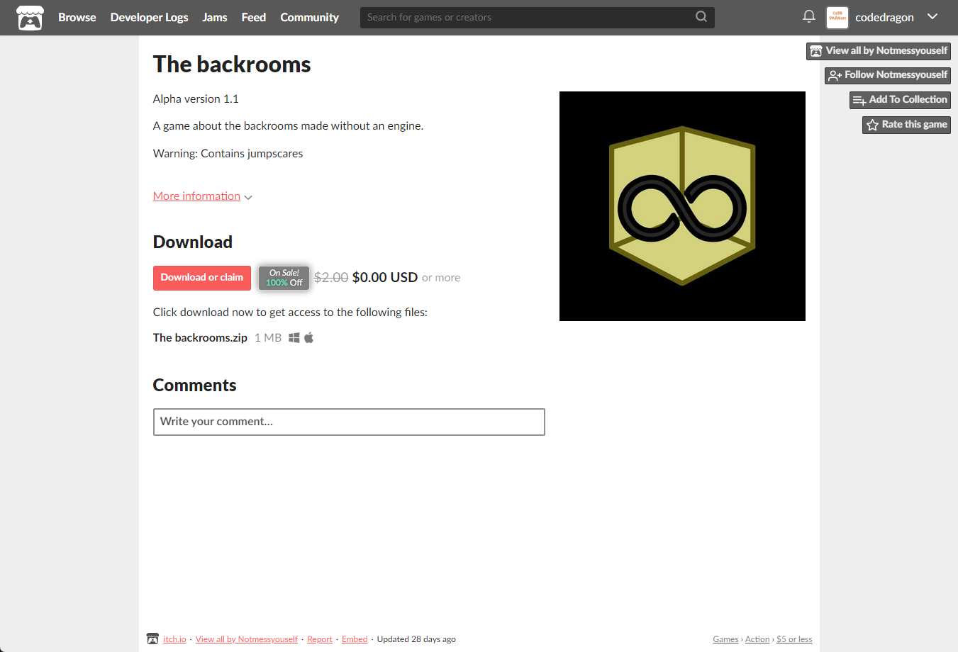 "The backrooms" 페이지에 있는 [Download or claim]을 클릭합니다.