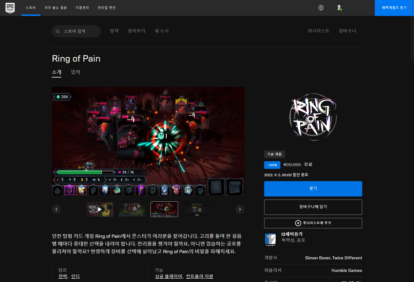 - "Ring of Pain" 에픽 무료게임 페이지