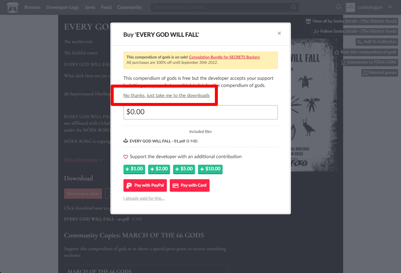 "EVERY GOD WILL FALL" 페이지에 있는 [Download or claim]을 클릭합니다.