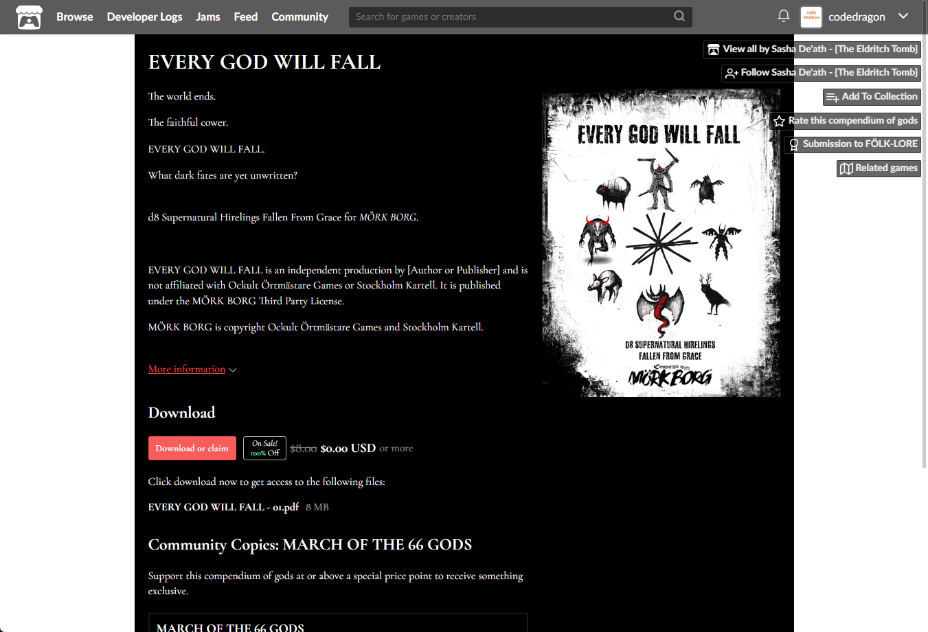 ₩10,904 -> ₩0(Free) EVERY GOD WILL FALL 무료로 받기 영구소장 - itch.io 잇치 닷 아이오 한시적 무료 소장하기