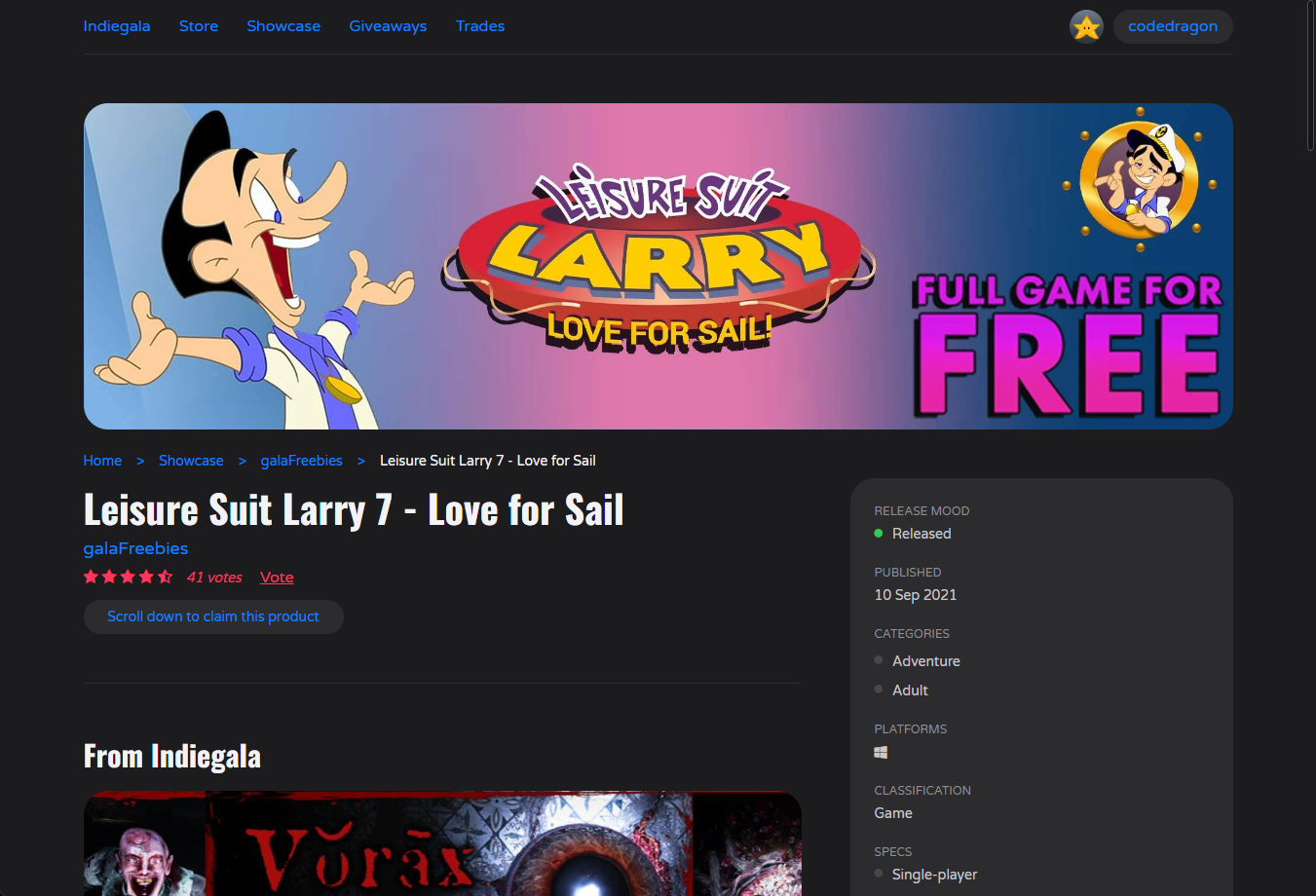 ₩6,500 -> ₩ 0(Free) Leisure Suit Larry 7 - Love for Sail 레저 슈트 래리 - 러브 포 세일 무료 - 인디갈라 indiegala 무료 소장 기회 기간한정 indiegala FREE GAME, Limited time