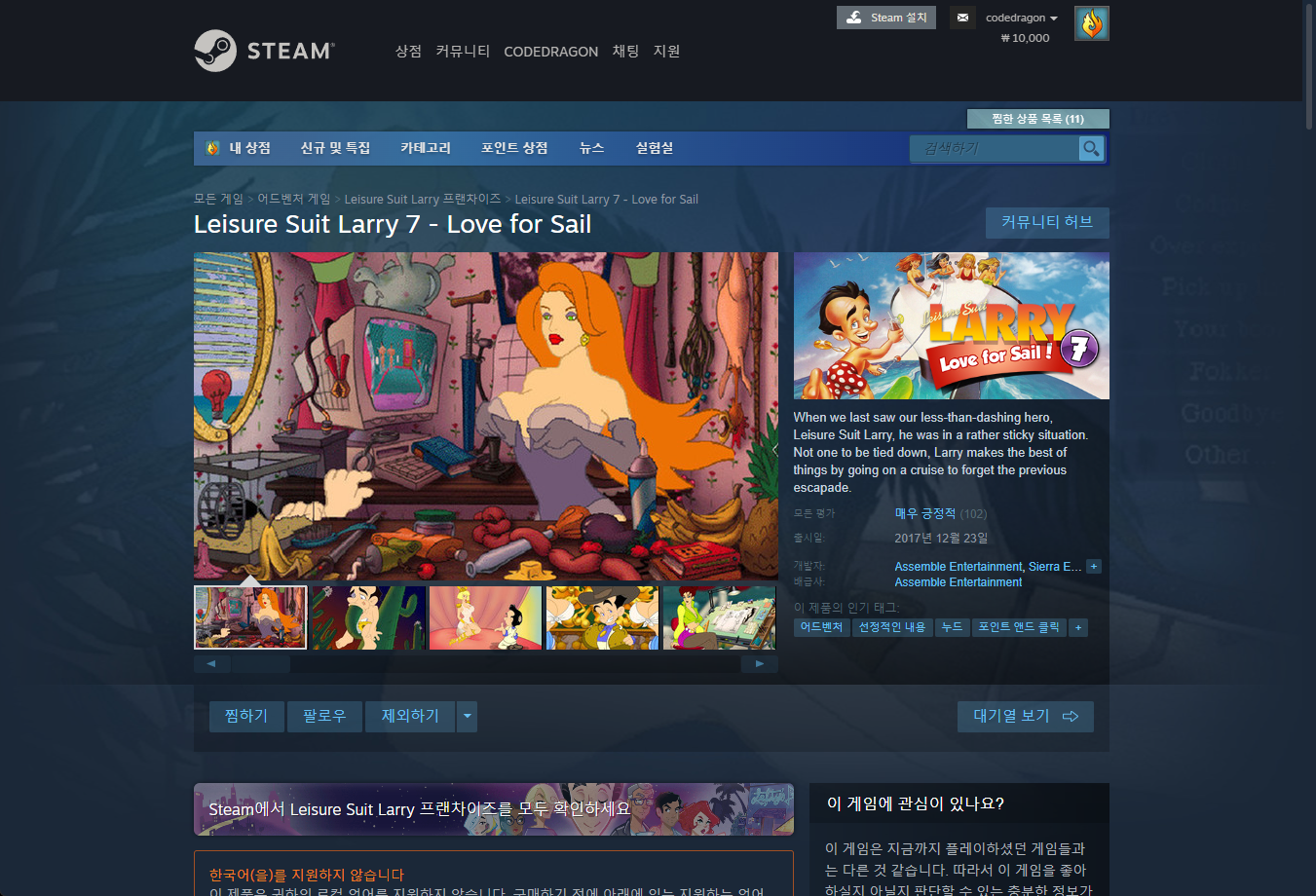 "Leisure Suit Larry 7 - Love for Sail" - Steam 스팀 페이지