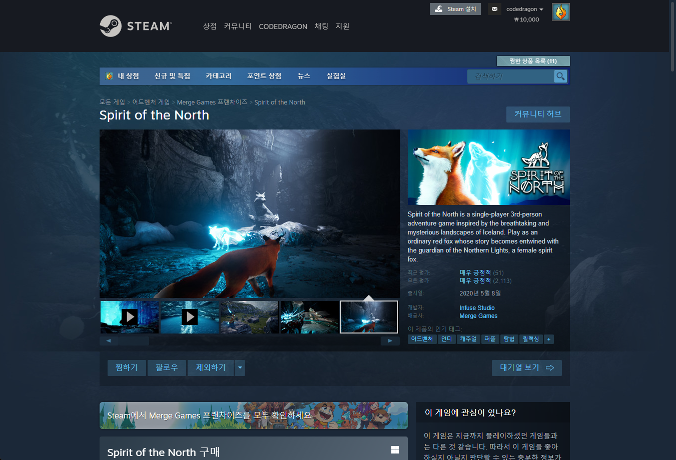 - "Spirit of the North" - Steam 스팀 게임 페이지