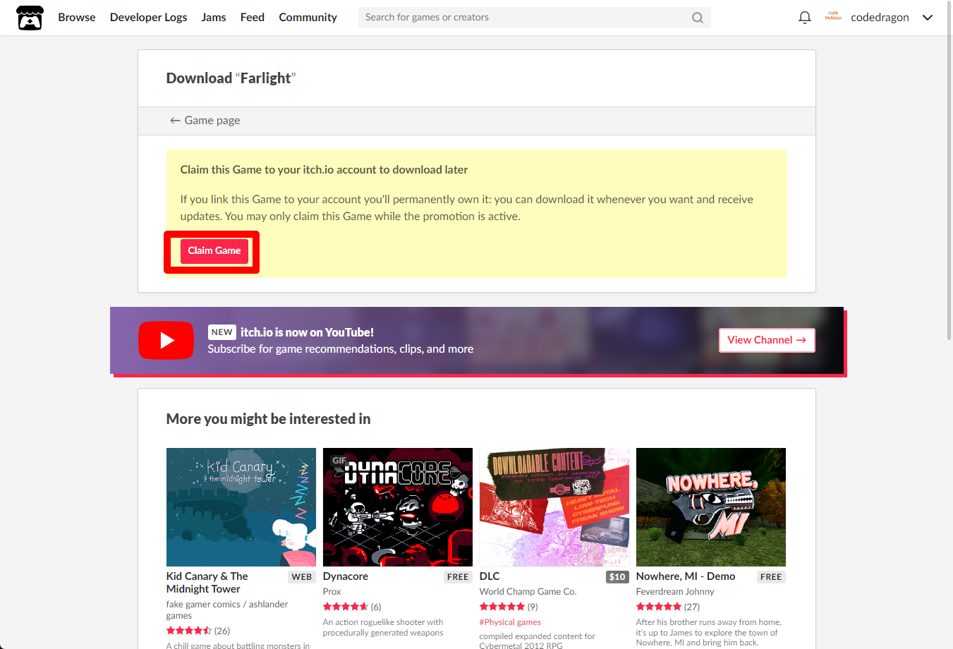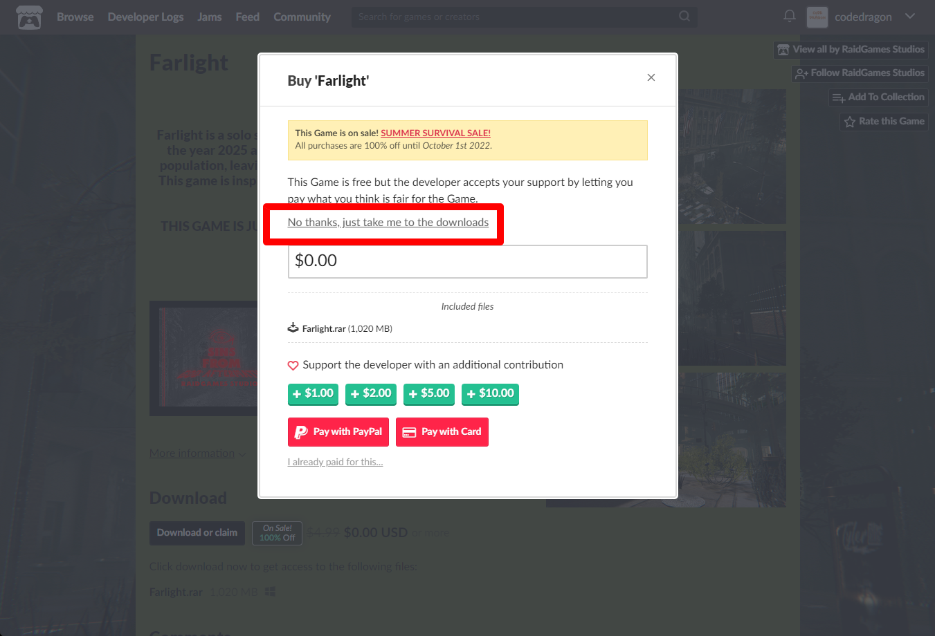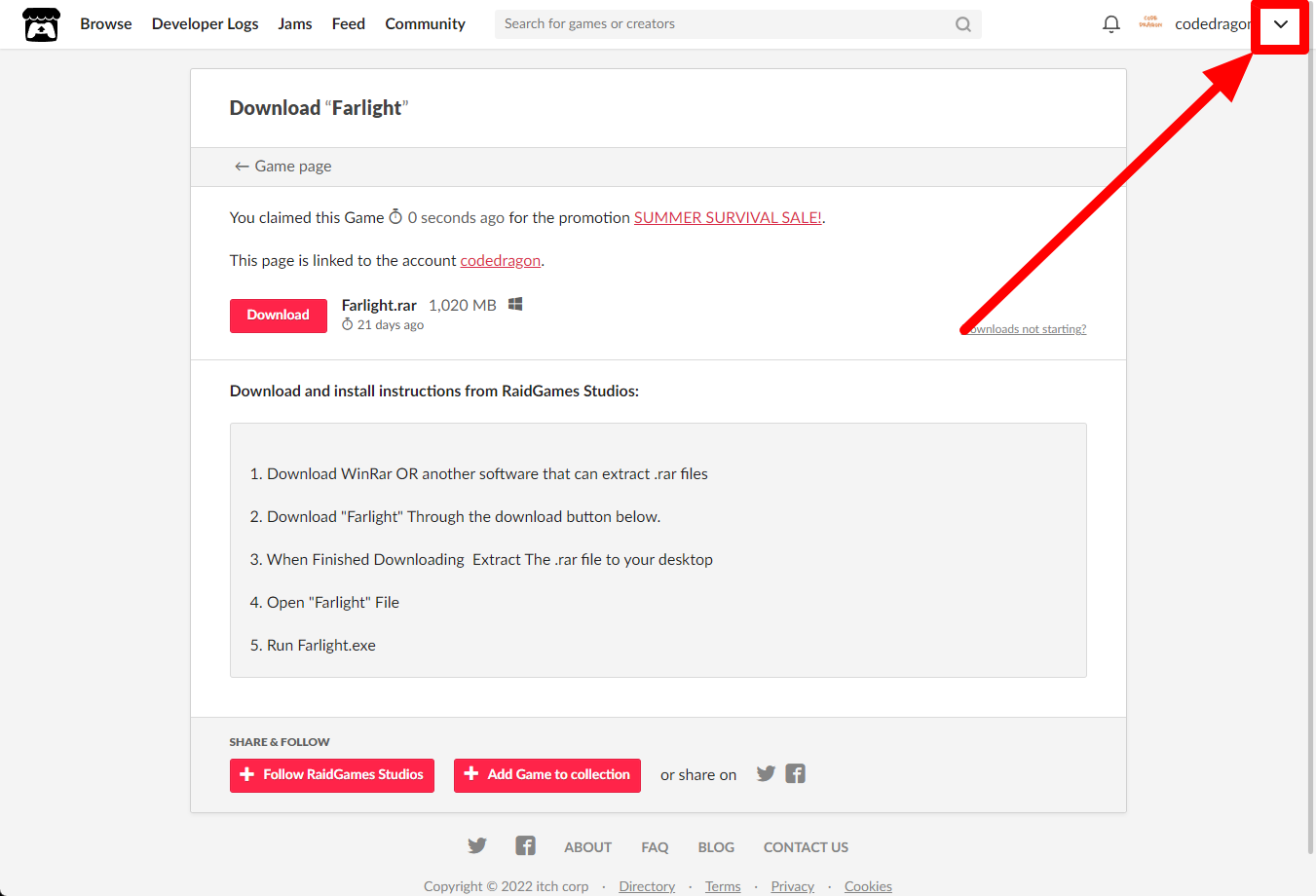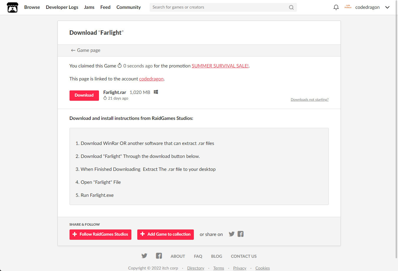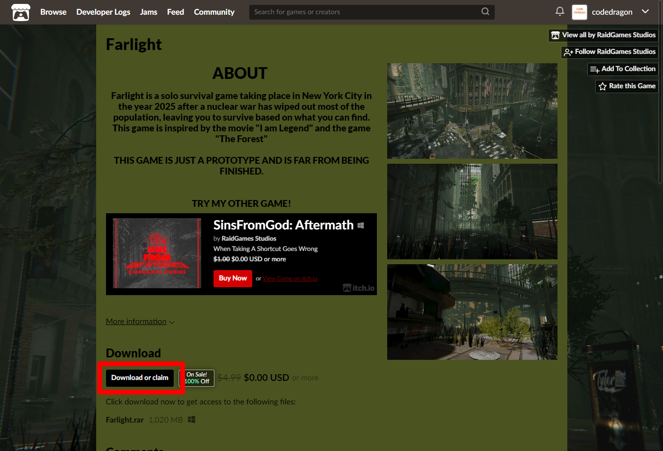"Farlight" 페이지에 있는 [Download or claim]을 클릭합니다.
