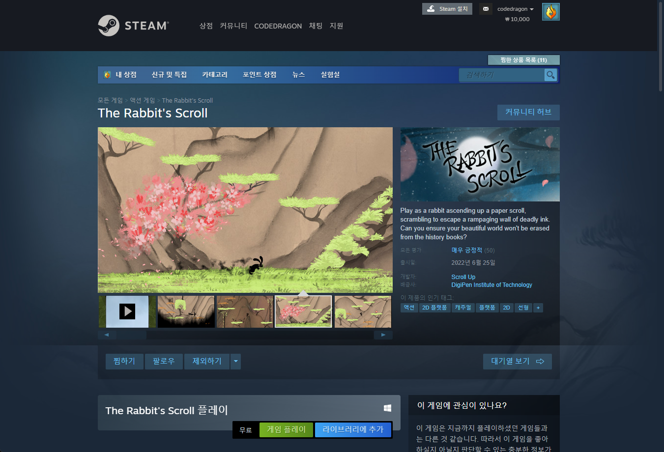 "The Rabbit's Scroll" 스팀 페이지 입니다.